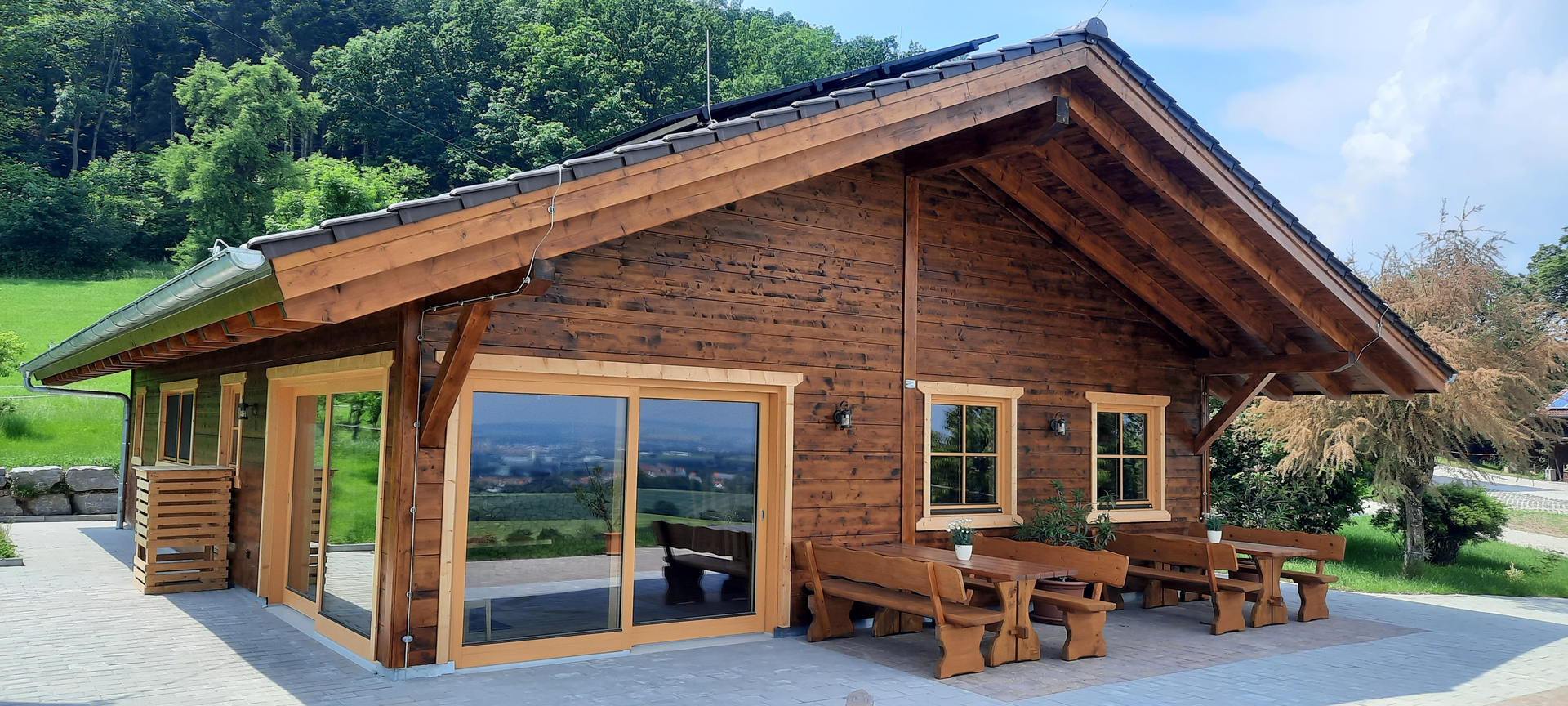 Melanie und Bernhard Weiß betreiben die „Almhütte“ in Weißlensberg seit 2021. In idyllischer Lage kannst du mit Blick auf weidende Rinder regionale Spezialitäten genießen.