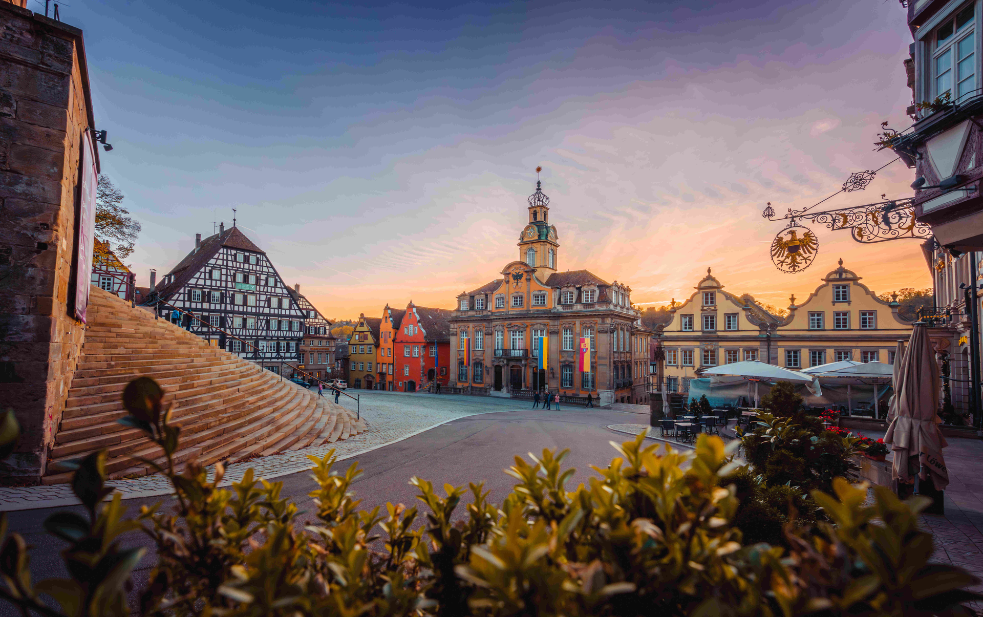 Rund 2.500 Jahre prägende Geschichte und eine Architektur von Mittelalter und Früher Neuzeit machen die malerische Salzsiedestadt am Kocher einzigartig. Der Marktplatz, das Herz der Stadt, wird von dem barocken Rathaus und der romanisch-gotischen Kirche St. Michael umrahmt und zählt zu den schönsten Süddeutschlands.