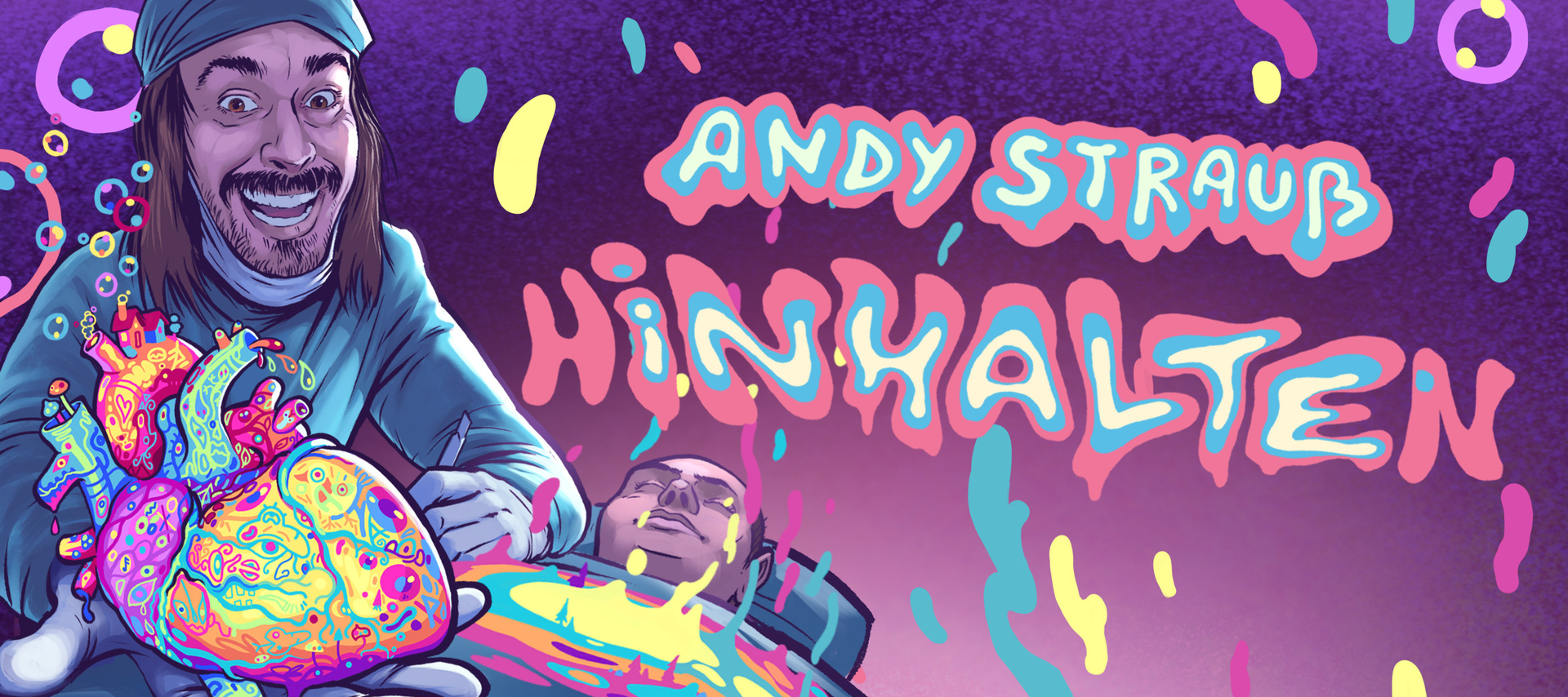 In seinem neuesten Programm „Inhalte hinhalten“ seziert er scharf humoristisch die deutsche Gesellschaft – mal ganz fein mit dem Skalpell, mal direkt mit der Kettensäge. Es erwartet das Publikum eine krude Mischung aus literarischen Auswüchsen, Stand-up-Comedy, Improvisation und vielen Inhalten, die er auf unnachahmliche Weise präsentiert. Ein Abend mit Andy Strauß ist mehr als nur eine Show – es ist ein Erlebnis, das lange nachwirkt. Und ballert. Ja, es ballert auch. Das ist wichtig zu wissen.