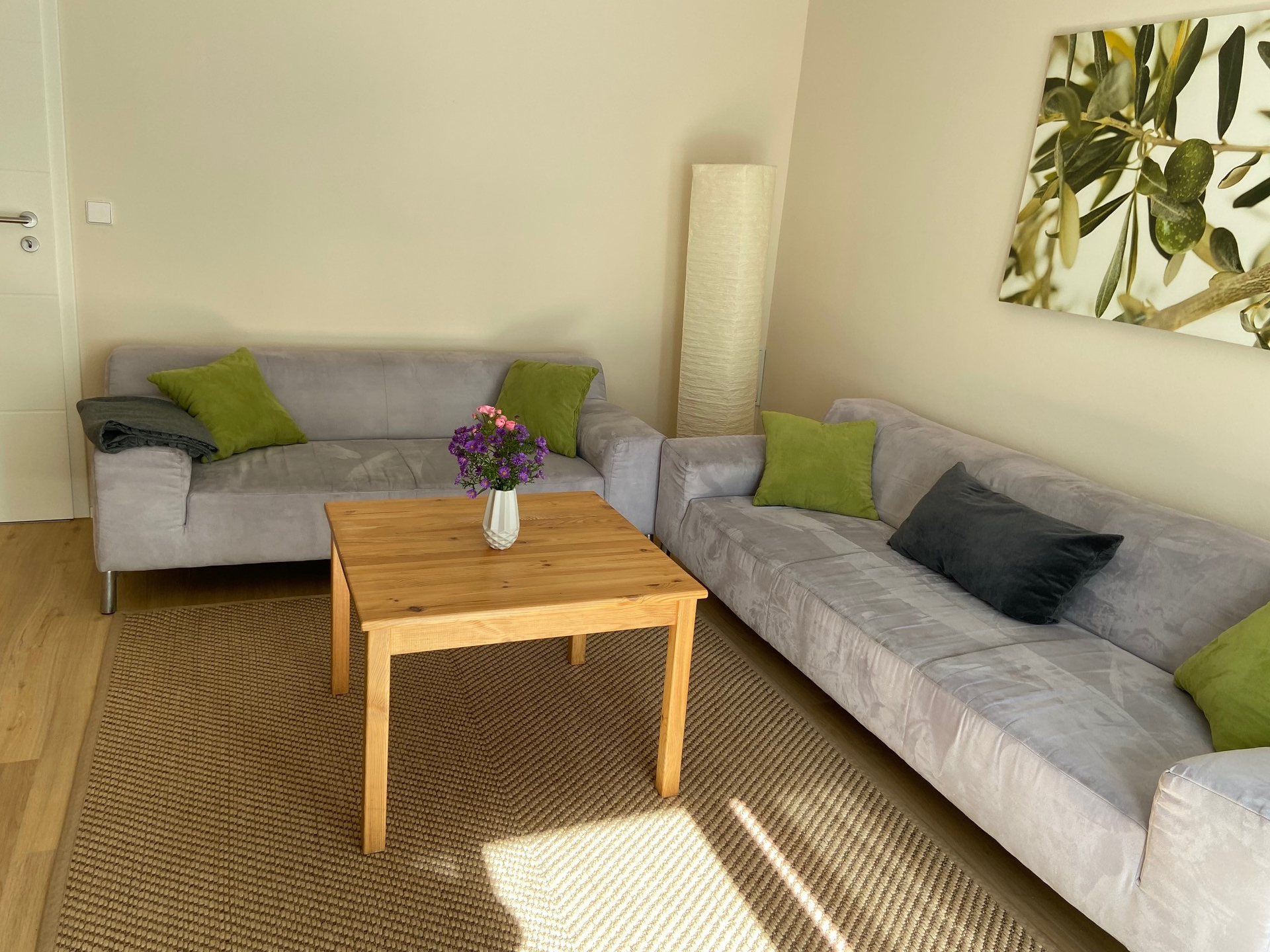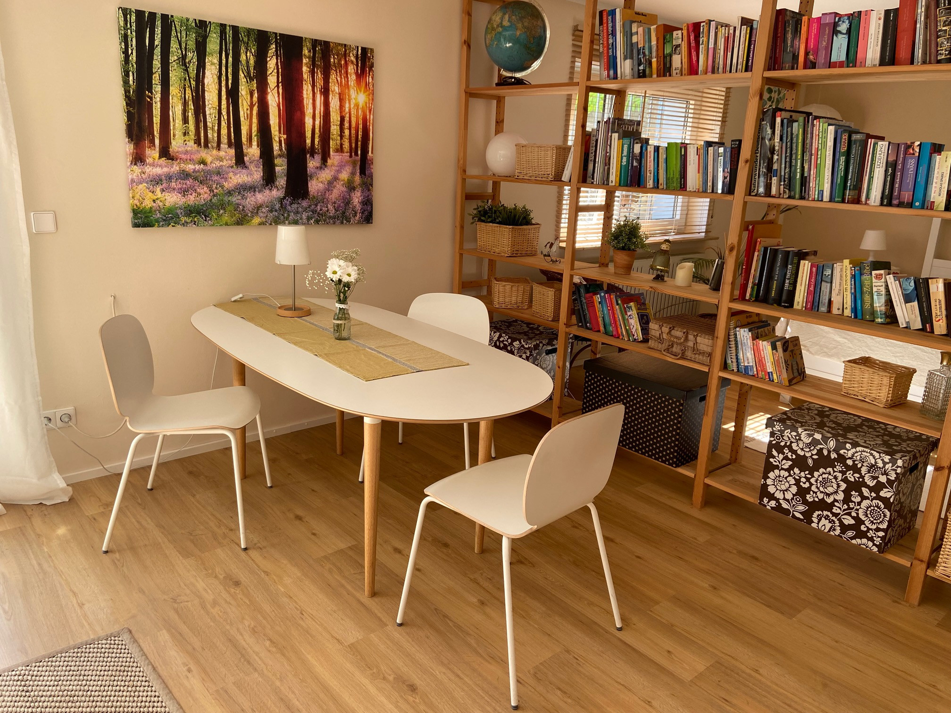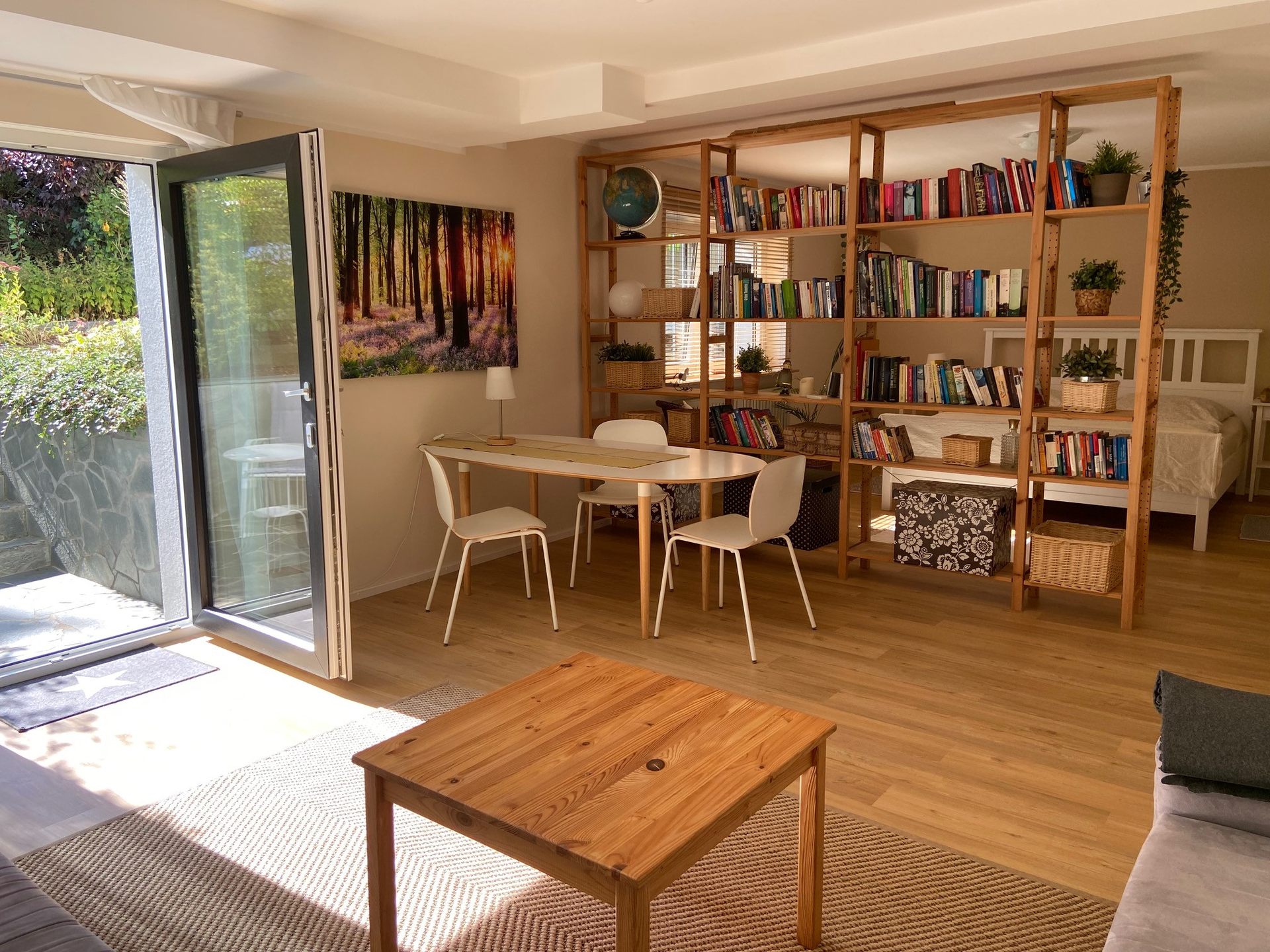 Die Ferienwohnung (60 qm) in ruhiger Ortsrandlage in Sinsheim-Reihen lädt zu einem erholsamen Urlaub zu zweit ein. Die Fewo verfügt über ein modernes Bad mit begehbarer Dusche. Im Wohn/Esszimmerbereich befindet sich ein TV- Flachbildschirm, Eckcouch und ein großer Essplatz. Daneben schließt sich über einen Raumteiler getrennt das Doppelbett an. die Küche mit kleinem Frühstücksplatz ist komplett eingerichtet. Direkt vor der Ferienwohnung befindet sich eine kleine sichtgeschützte möblierte Terrasse.