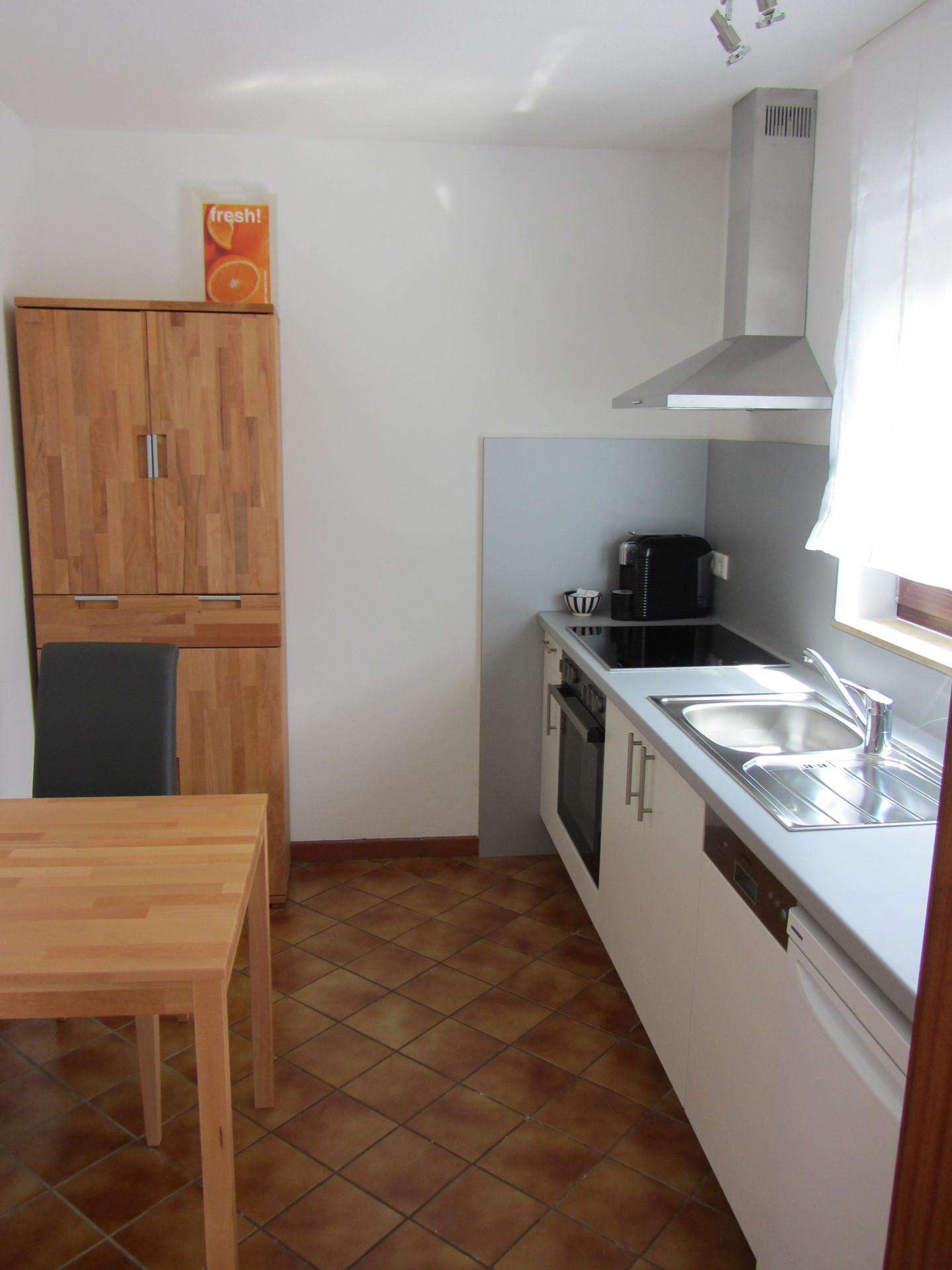 Die separate Küche ist mit allem ausgestattet, was du brauchst: Kaffeemaschine, Wasserkocher, Toaster, Backofen, Geschirrspüler und eine gemütliche Essecke. Eine Waschmaschine steht dir ebenfalls zur Nutzung zur Verfügung.