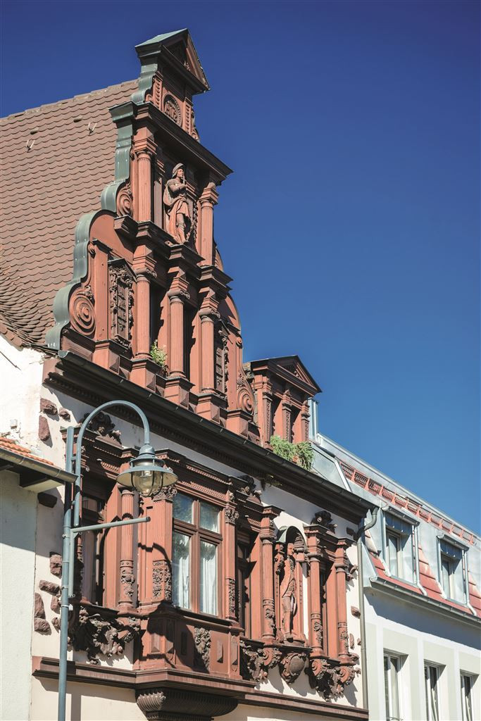 Eine besonders außergewöhnliche Gestaltung offenbart das Gebäude Friedrichstraße 20. Der frühere Eigentümer, Kunstschreiner August Allert, ließ hier eine „überwältigende Werbefläche“ für „seine im Angebot stehenden Leistungen“ entstehen. Die üppige aus Holz geschnitzte Schmuckfassade zitiert in freier Anlehnung das Heidelberger Renaissance-Gebäude „Haus zum Ritter“. Die Figur des Bernhard von Baden (1428/29-1458) bekrönt zusammen mit dem Wortlaut: „Ars Longa – vita brevis“ die Fassade. Eine weitere Inschrift gedenkt Kurfürst Carl Theodor, der als stattliche Ganzkörperfigur inmitten einer Rundbogennische erscheint.