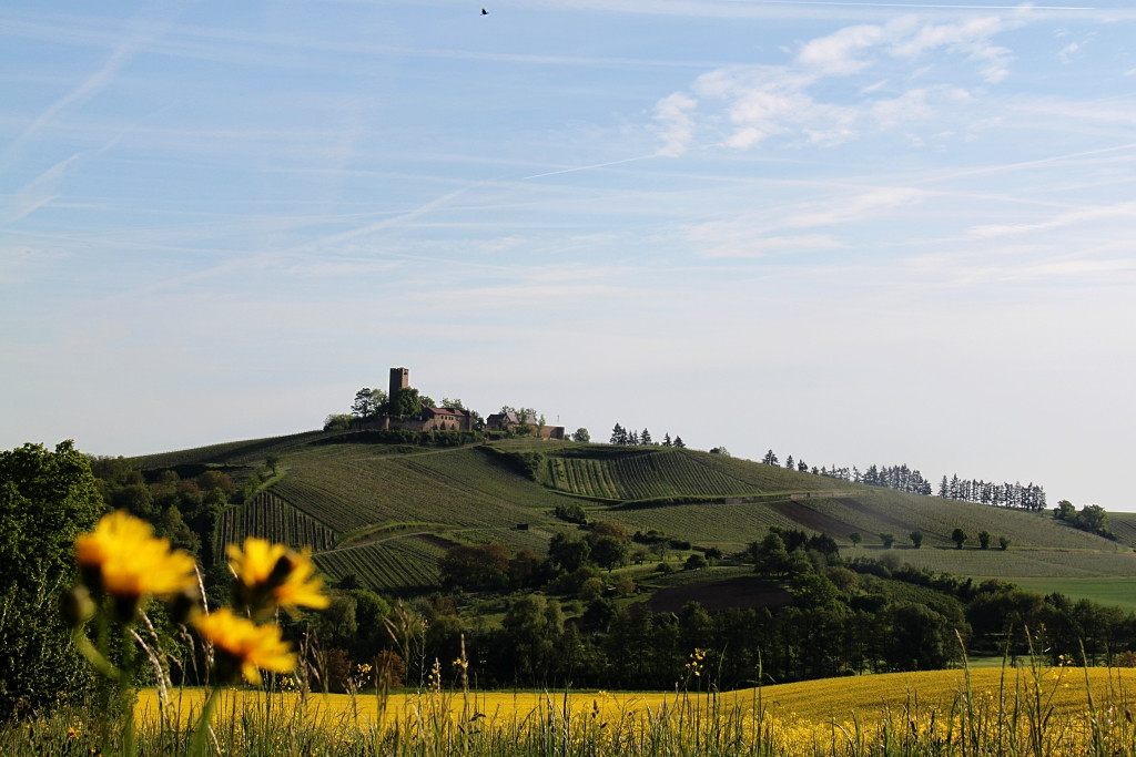 Rastplatz mit Sonnenliege. Tolle Aussicht auf die umliegenden Weinberge und die Ravensburg.