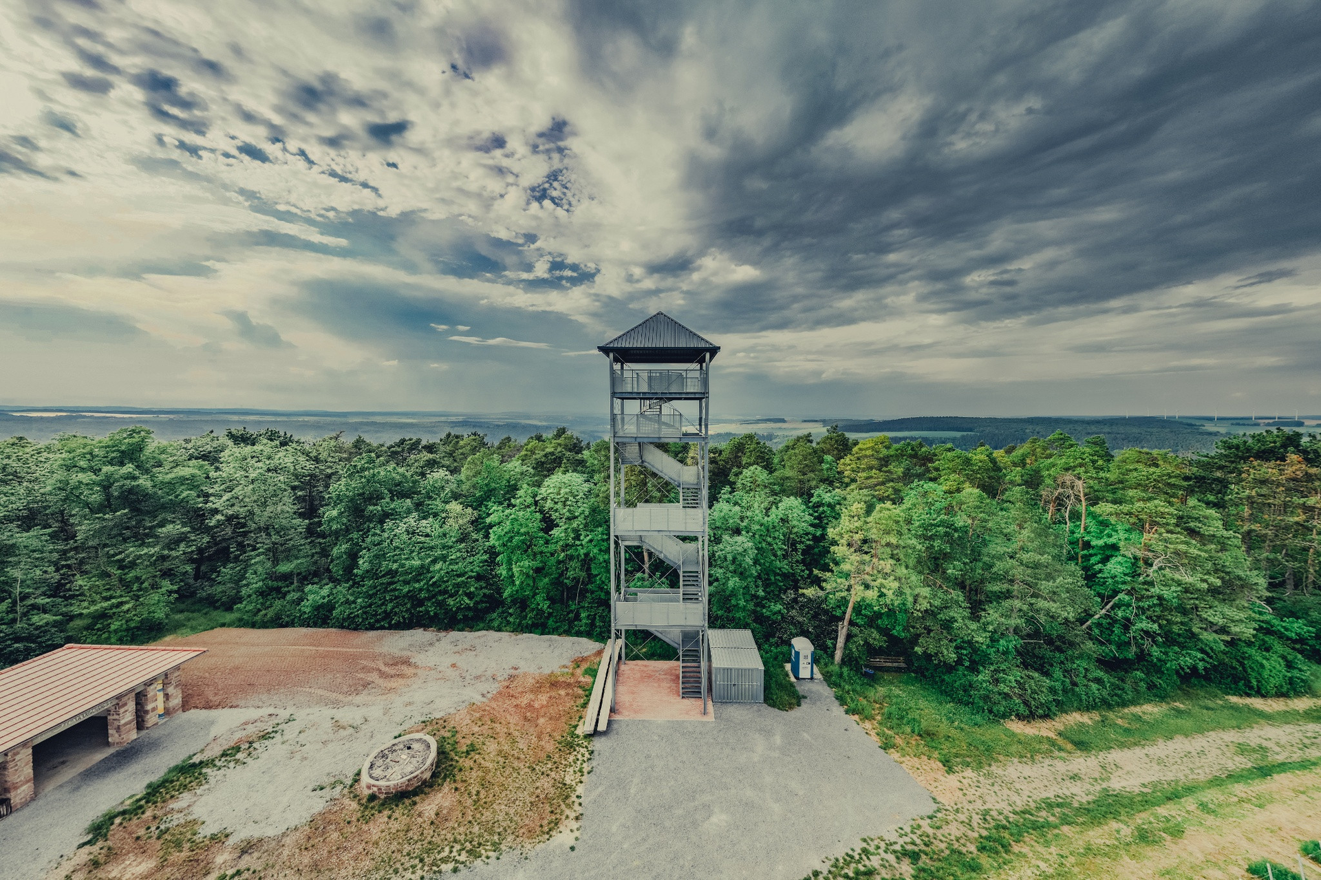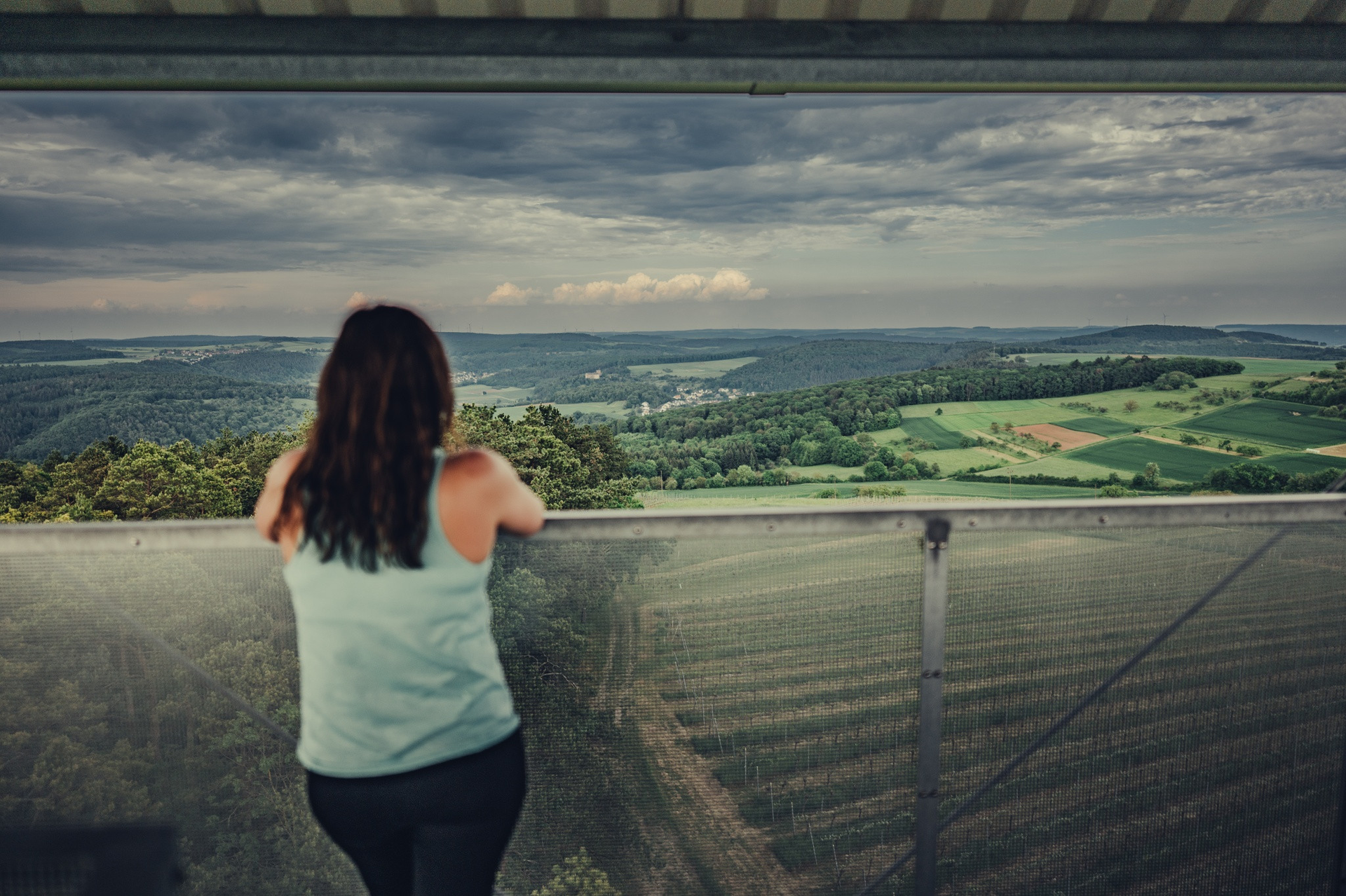 Mitten in den Weinbergen steht der Aussichtsturm mit grandioser Aussicht über das Taubertal, in den Spessart bis zur Rhön sowie in den Odenwald und bis Würzburg.
