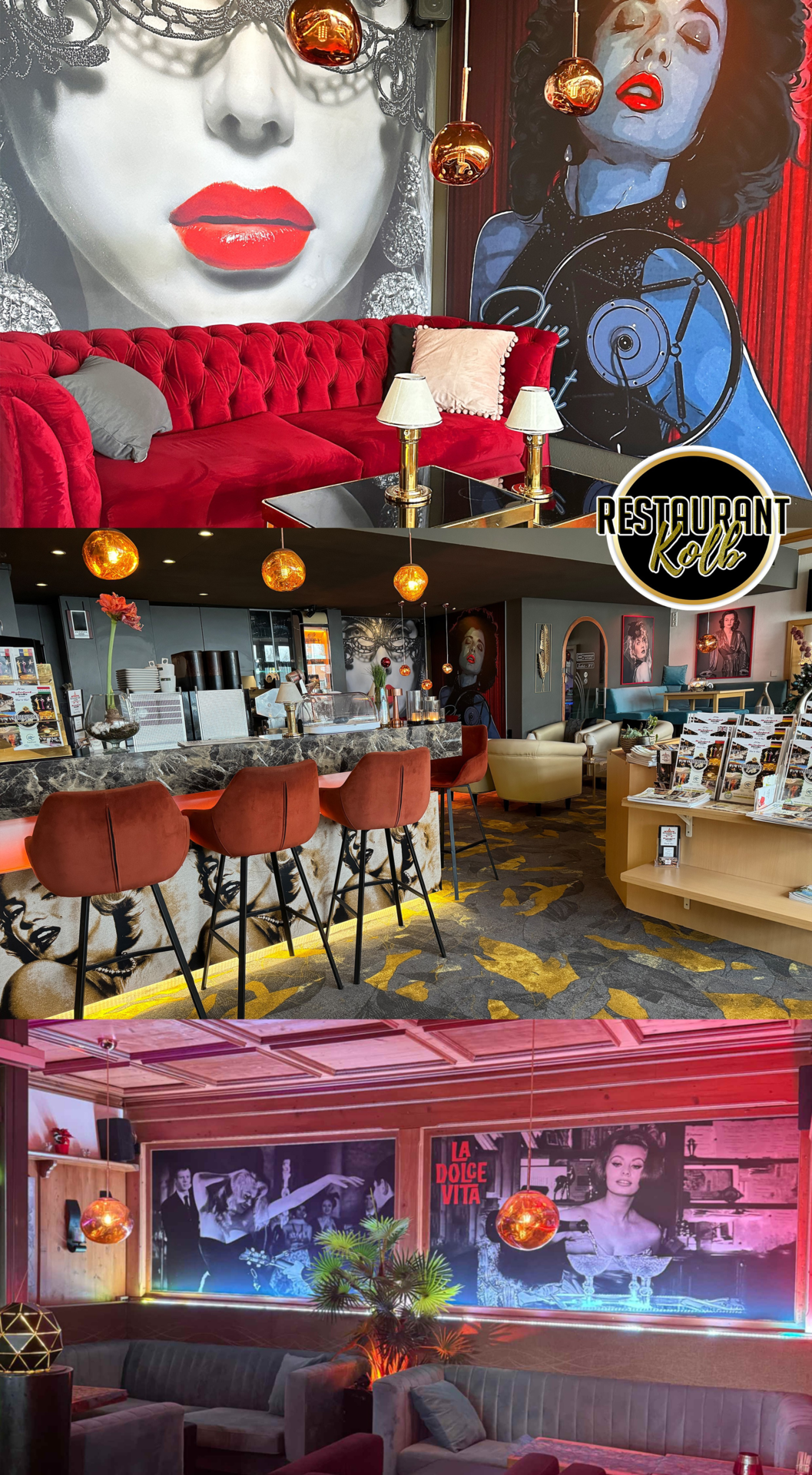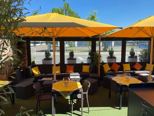 Unser Restaurant teilt sich in 3 Bereiche auf. Vorderer Gastraum, hinterer Gastraum mit Trennwänden für Veranstaltungen, sowie die Outdoor Lounge/ Biergarten.