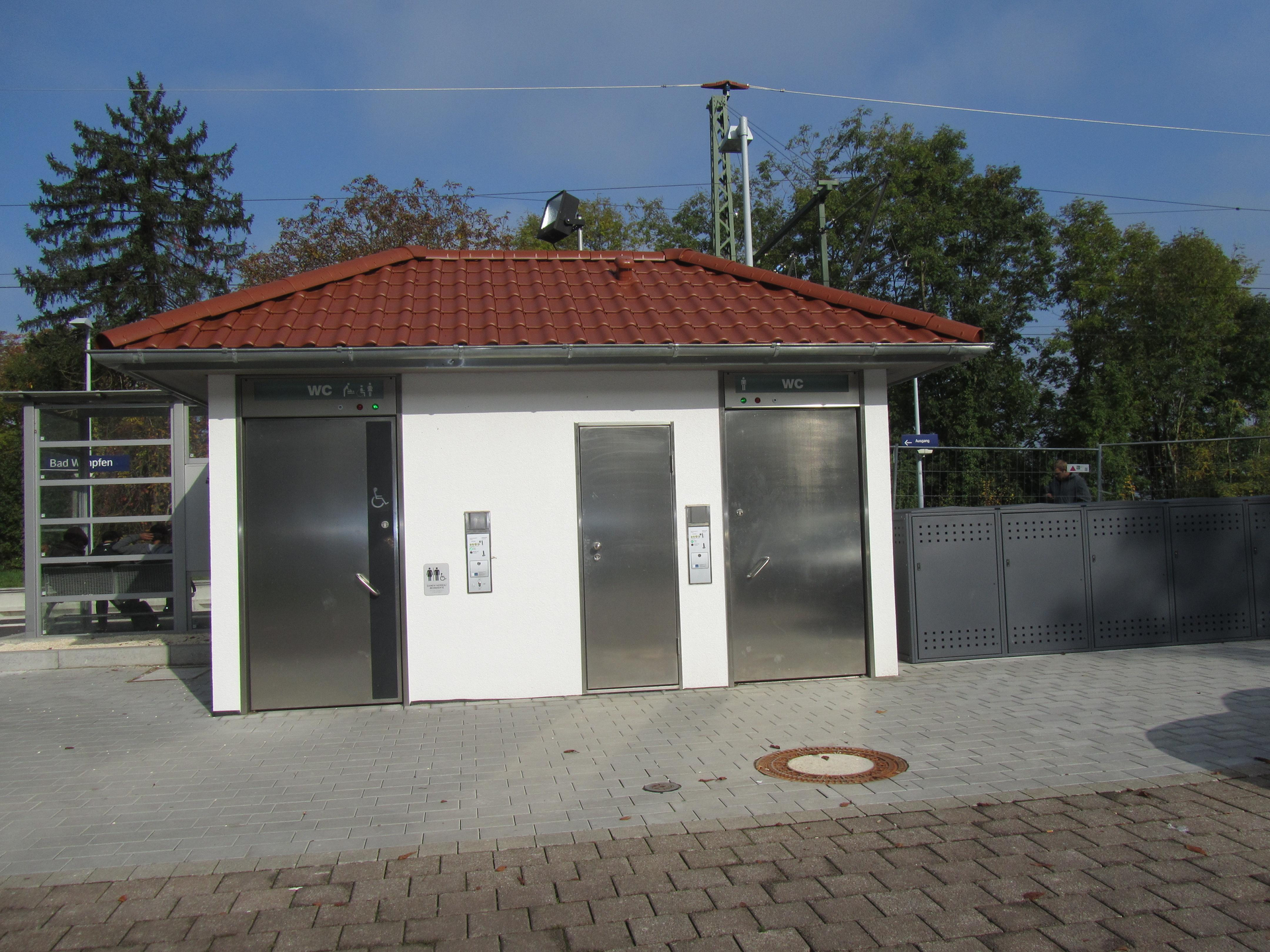 Direkt am Parkplatz des Bahnhofs Bad Wimpfen neben den öffentlichen Toiletten.