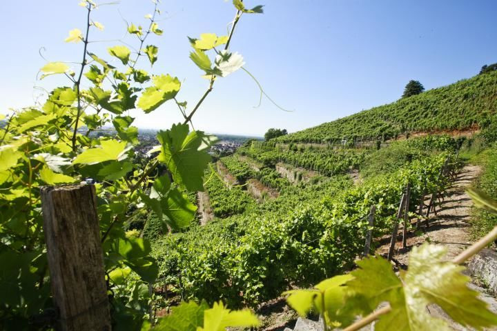 Die Etappe endet in Oberderdingen, wo der badische auf den württembergischen Weinbau trifft. Die Weinlandschaft betrachten lässt es sich am besten vom „Weinplateau Derdinger Horn“.