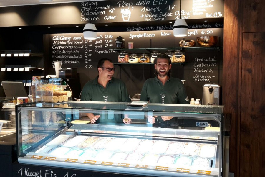 Hier trifft man sich gern. Sei es ganz spontan beim Einkauf in der Bäckerei oder gezielt für kleine genussvolle Pausen im hektischen Alltag. Gutes genießen und sich etwas Gutes tun. Lassen Sie sich verwöhnen von unseren freundlichen Mitarbeiter/innen, dem umfangreichen Angebot an frischen Backwaren, feinen Kuchen, Süßgebäck sowie Eis-Spezialitäten aus eigener Herstellung. Wir bedienen und beraten Sie gerne an unserer Theke.