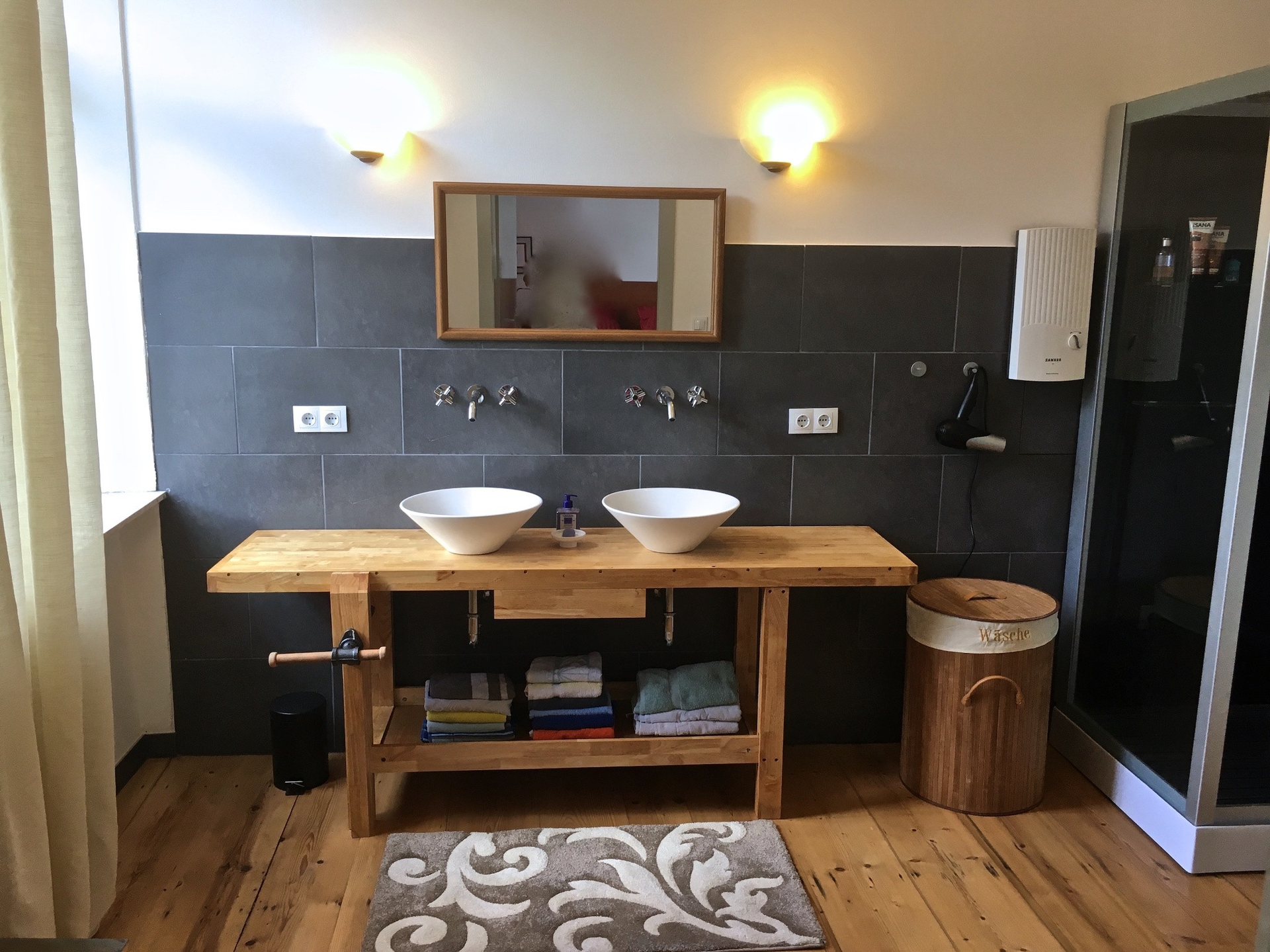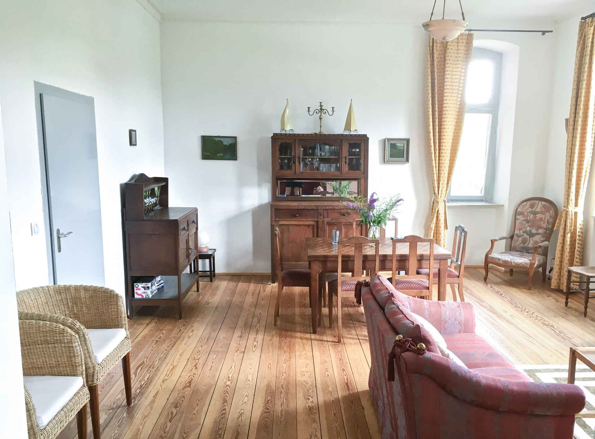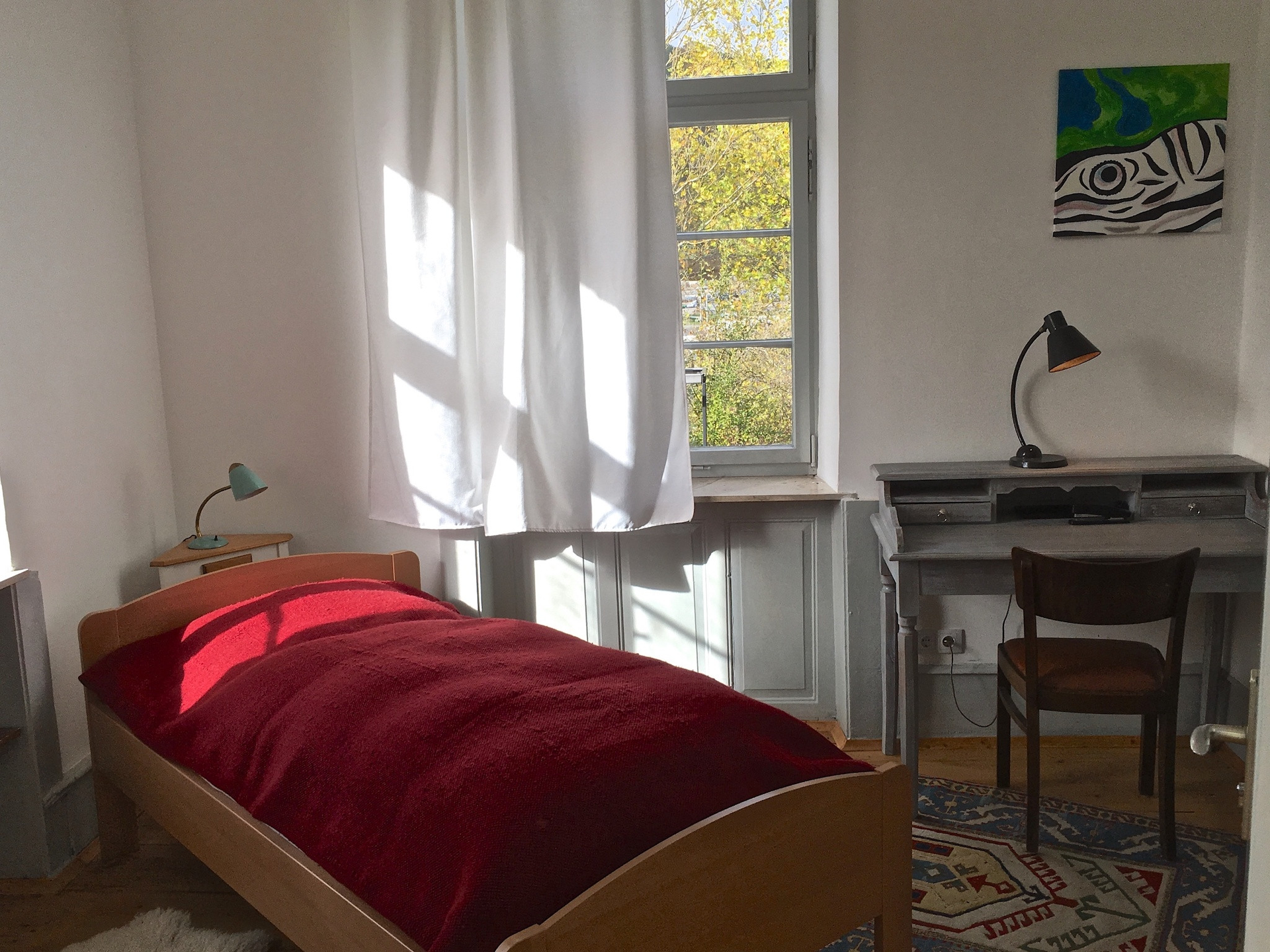Riesige sonnige Wohnung im historischen Bahnhof Gamburg mit Blick auf Tauber und Burg Gamburg. Komfortable Küche, 2 Bäder, Gäste-WC. Garten. Alleinlage!