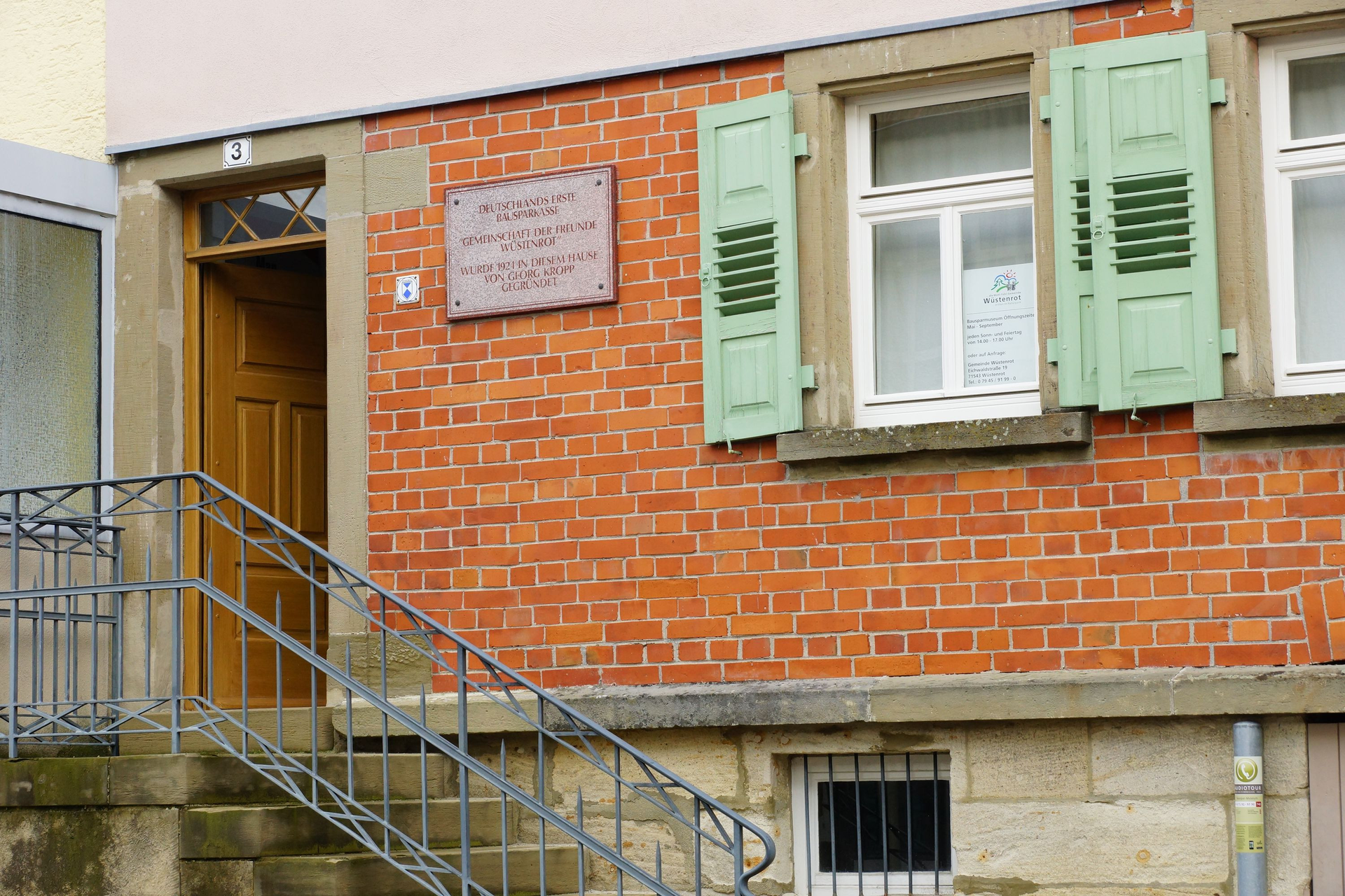 Hier begann die Bausparkasse Wüstenrot in beengten Verhältnissen mit der Arbeit. Gründer der ersten Bausparkasse Deutschlands war Georg Kropp.
