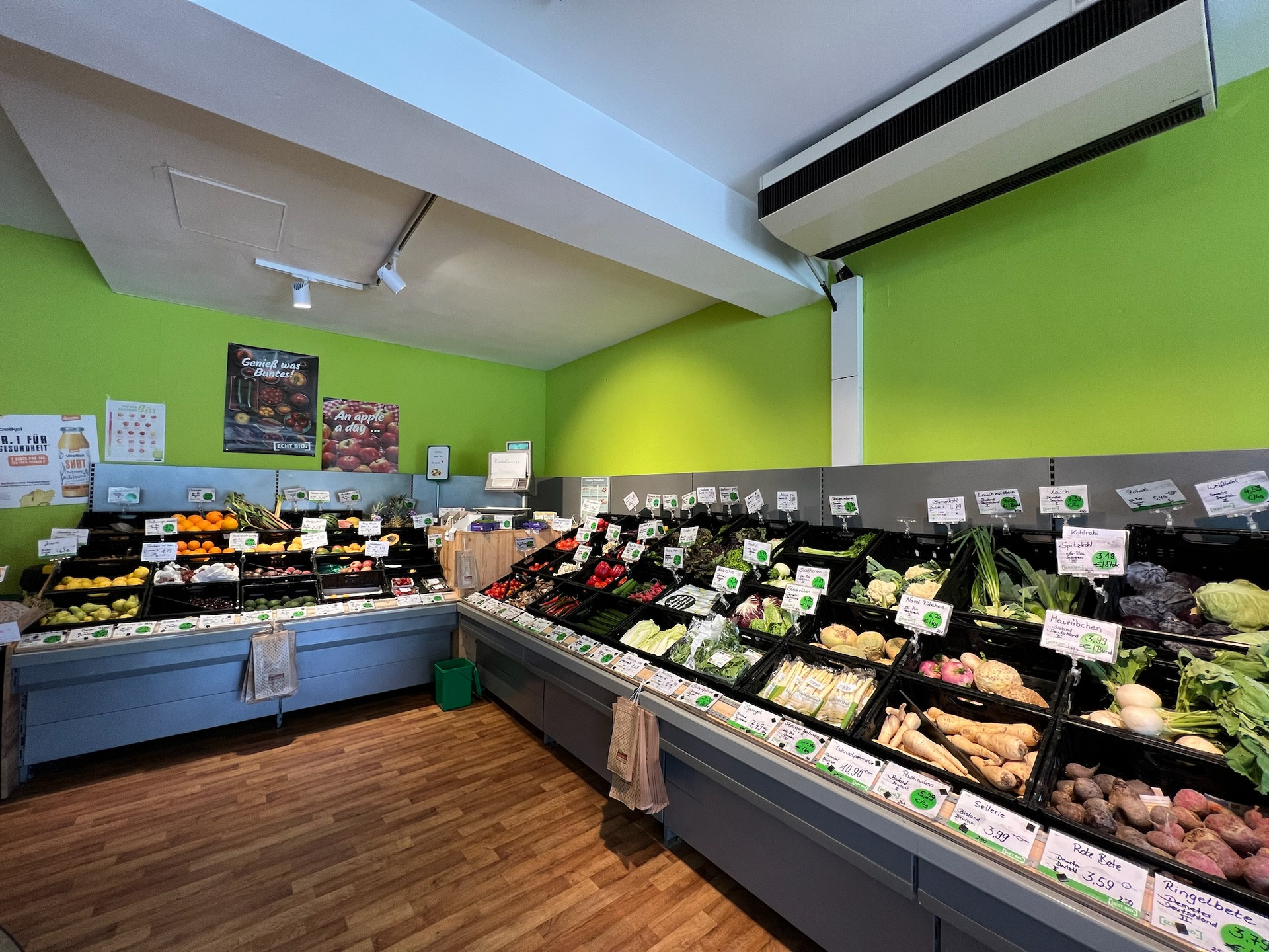 In unserem Biomarkt in Bad Mergentheim, bieten wir Ihnen nach dem Umzug ein erweitertes Bio-Vollsortiment mit täglich frischem Obst und Gemüse, einer großen Käseauswahl sowie täglich frische Brotspezialitäten von der Vollkornbäckerei Köhler aus Würzburg. Auch unsere eigenen Beeren-Bauer-Produkte sowie Eier aus eigener Bio-Naturland Haltung sind im Sortiment zu finden. Wir freuen uns auf Sie!