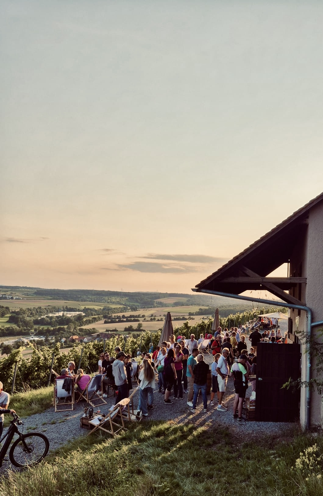 Erlebt unsere Weine mit herrlichem Panoramablick auf die Weinberge und entspannter Atmosphäre. Bringen Sie gerne Freunde, Bekannte, Nachbarn oder Ihre ganz persönlichen Lieblingsmenschen mit oder sagen Sie es einfach weiter.