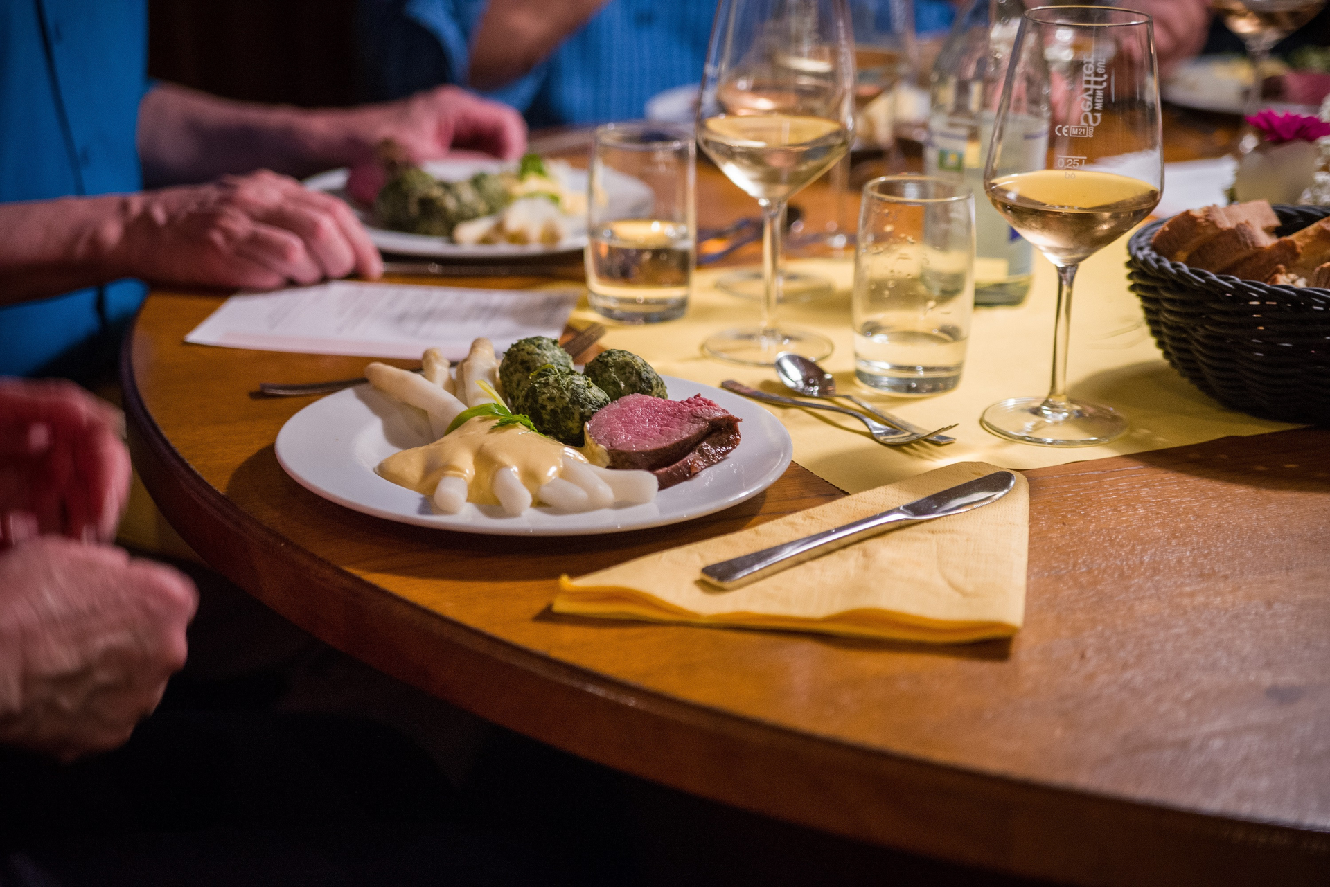 Im gemütlichen Kellerlokal werden typische schwäbische Speisen, wie Schlachtplatte oder hausgemachte Maultaschen, aber auch Schnitzel oder Bratwürste angeboten.