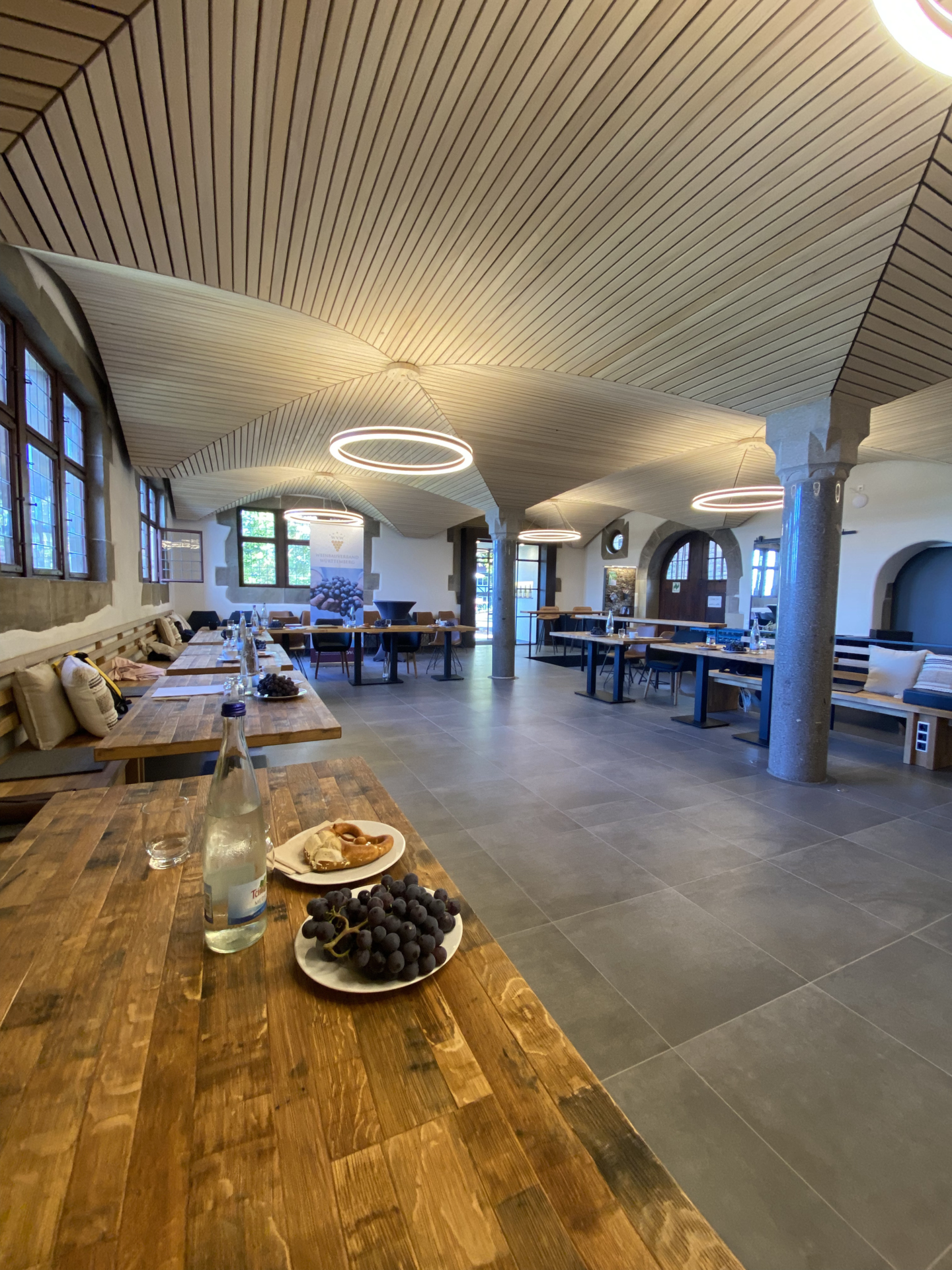 Die alte Kelter im Schlossgut Hohenbeilstein wurde mit viel Liebe zum Detail als Tagungs- & Eventraum umgestaltet und trägt seit 2024 das Siegel "Wein & Architektur" des Landes Baden-Württemberg.
