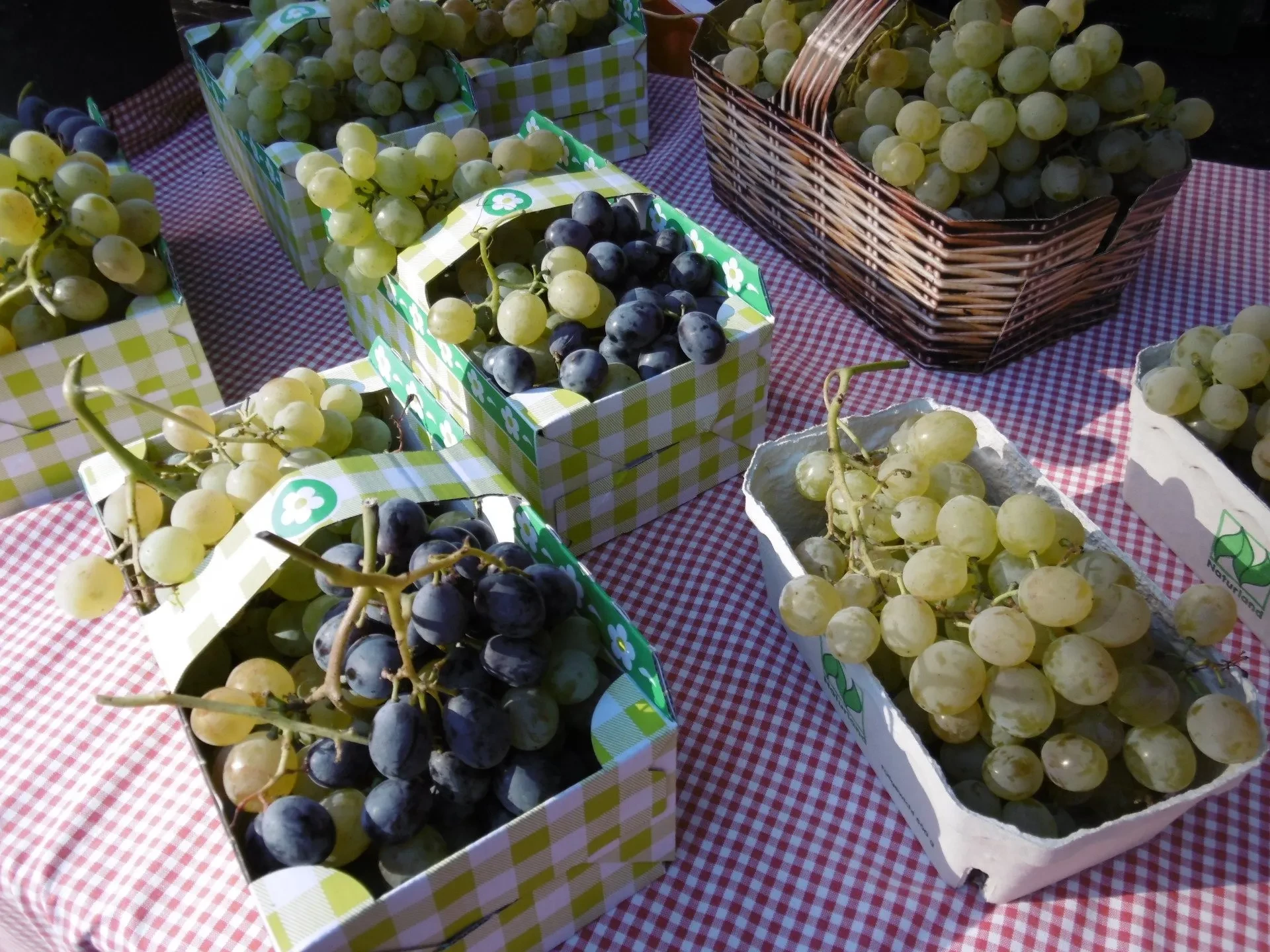 - Tafeltrauben (Ende August bis Mitte Oktober) und Traubensaft