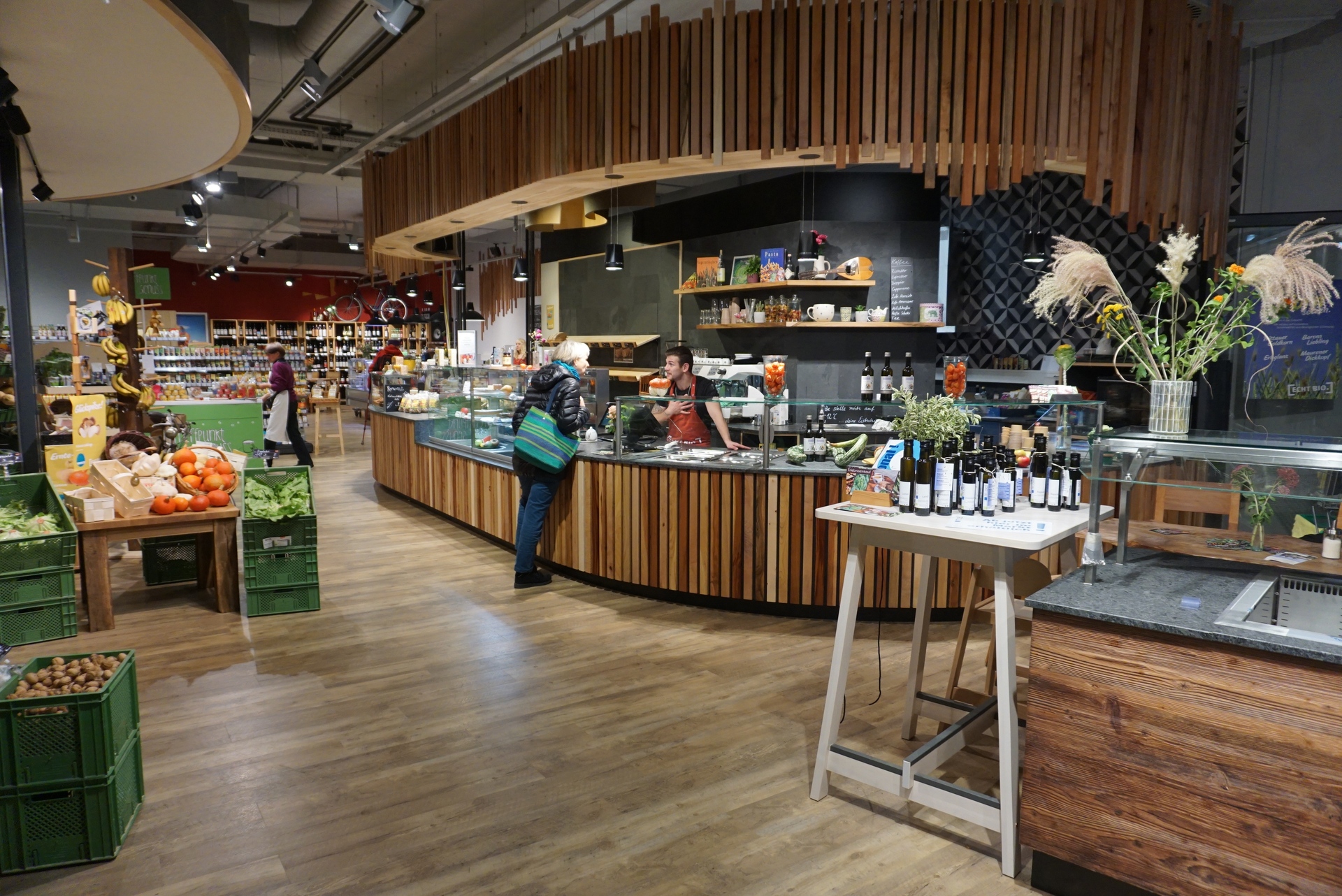 Modern eingerichteter Biomarkt in der Altstadt Schwäbisch Halls mit vorwiegend regionalen Produkten, Unverpackt-Station und gemütlichem Café sowie "moo"-Eis in Demeter-Bio-Qualität.