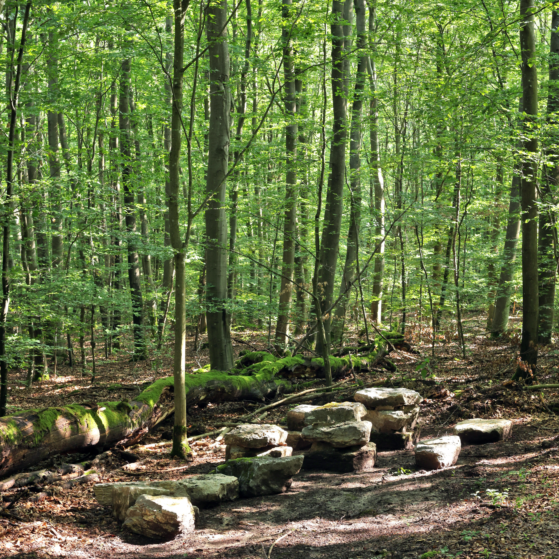 Nach einer leichten Steigung erreicht man das Naturdenkmal Dreieiche. Hier befindet sich ein gemütlicher Rastplatz, der zu einer kurzen Pause einlädt und Gelegenheit bietet, die Umgebung zu genießen. Anschließend verläuft der Weg weiter durch den dichten Wald, bevor sich die Baumgrenze öffnet und ein herrlicher Ausblick auf die sanften Hügel, Felder und Wiesen des Kraichgaus wartet.