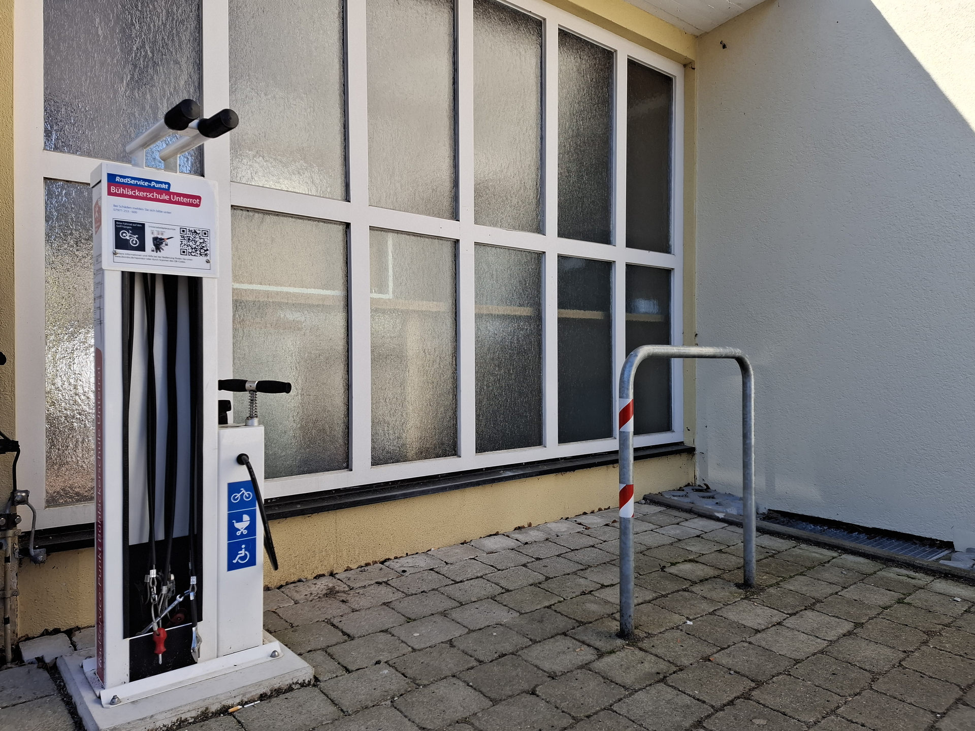 Der RadSERVICE-Punkt ist eine rund um die Uhr zugängliche Station und enthält Werkzeuge und eine Luftpumpe, womit kleinere Reparaturen schnell durchgeführt werden können.