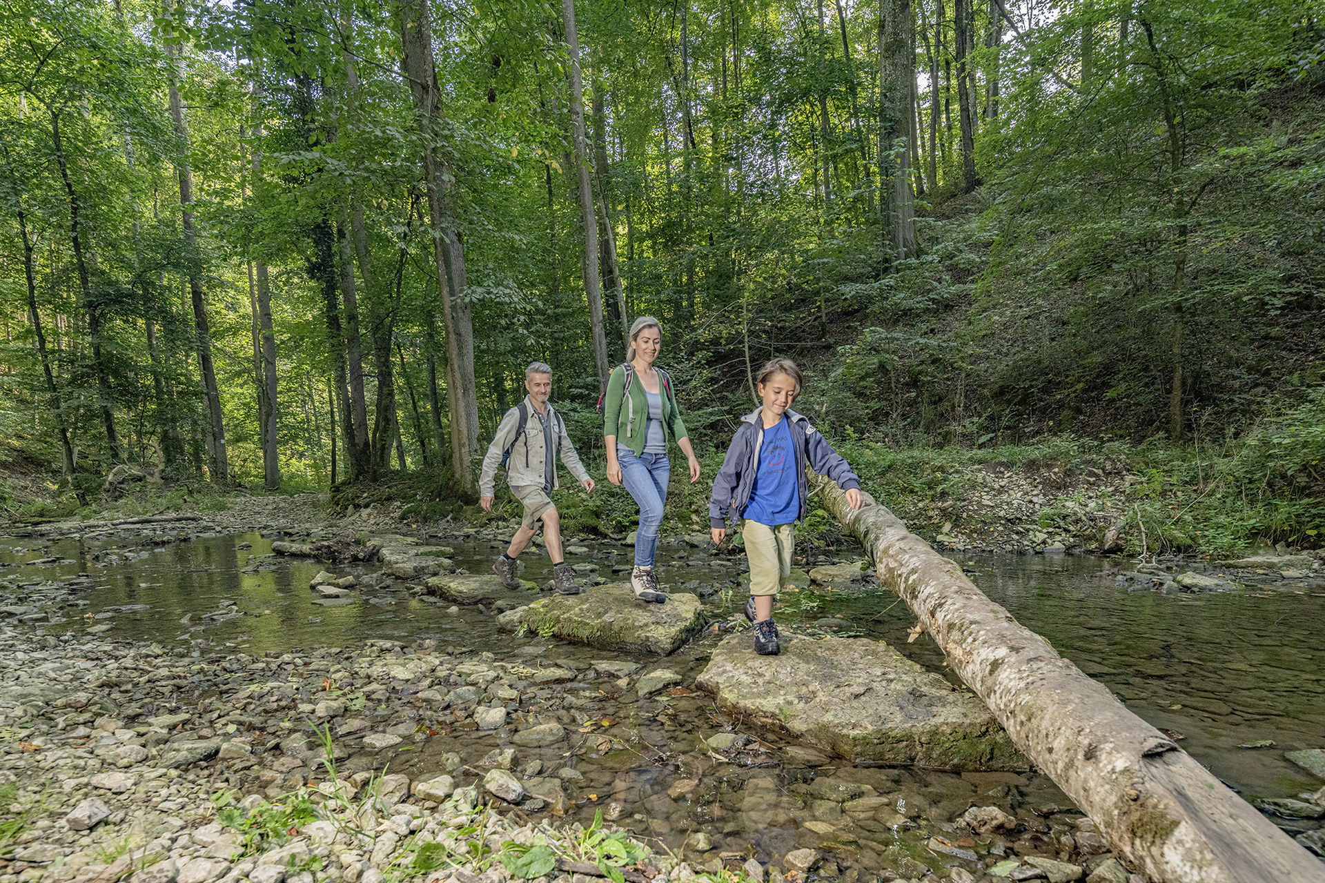 Diese landschaftlich beeindruckende Route führt dich durch tiefe Täler mit einer außergewöhnlichen Flora und Fauna sowie über aussichtsreiche Höhen. Entdecke die historischen Burgruinen von Klingenfels und Hopfach, die vom Leben im Mittelalter zeugen, und wandere entlang der alten Handelsstraßen, die die Region einst prägten.