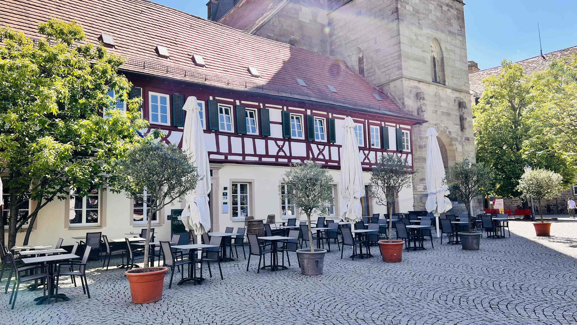 In einem stilvollen Ambiente bietet das Restaurant Platz für bis zu 80 Personen auf der unteren Etage und verlockt mit einer Lifestyle-Ecke gegenüber der Bar, wo Sie sich bei Cocktails, Wein, einem entspannten Lunch oder Dinner verwöhnen lassen können. Unsere einzigartige Sonnenterrasse, ein wahrer Blickfang mitten auf dem Marktplatz von Öhringen, verspricht unvergessliche Genussmomente.