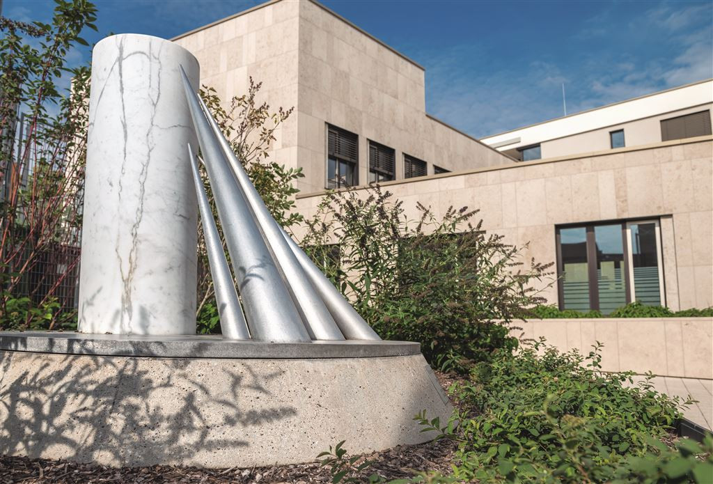 Der in Heidelberg ansässige Konstruktivist Horstmann-Czech schuf die ästhetische Skulptur in technischer Perfektion und in einer ebenso kühlen, wie anziehenden Materialkombination von geglättetem Carraramarmor und poliertem Stahl. Trotz des harmonischen Äußeren entstand ein Werk voller Gegensätze. Die Rolle der spitzen Stahlkegel ist nicht geklärt: Bieten sie der sich beugenden Säule der Kunst Schutz oder sind sie Bedrohung? Colonna d´Arte liefert unterschiedliche Deutungsansätze und zeigt prinzipiell in minimalistischer Schönheit die Fragilität von Kunst auf.