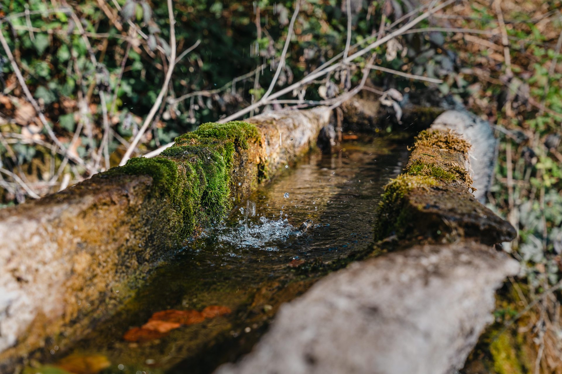- Liebevoll gestalteter Brunnen und überdachte Holzbank