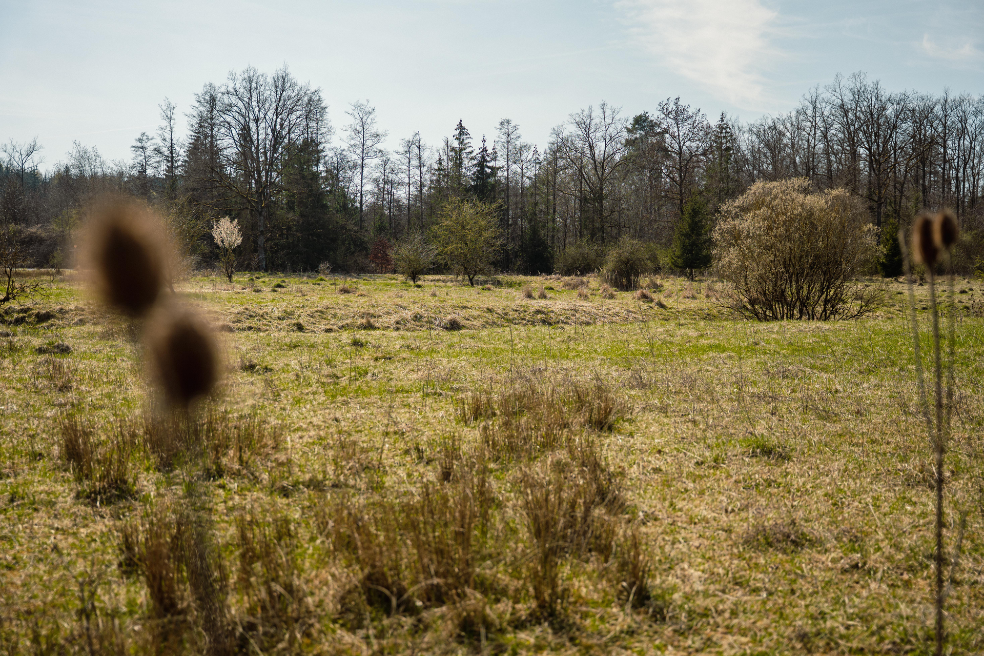 Nach rund 300 Metern gehst du rechts am Waldrand entlang, der Weg verläuft in einer langgezogenen Linkskurve. Du wanderst immer geradeaus weiter bis zu einer Kreuzung, an der du links einen kleinen See entdecken kannst. Hier biegst du rechts ab und nach etwa 200 Metern wieder links – der Weg steigt nun etwas an. In einer Kurve blitzt durch das Gebüsch erneut ein See auf.