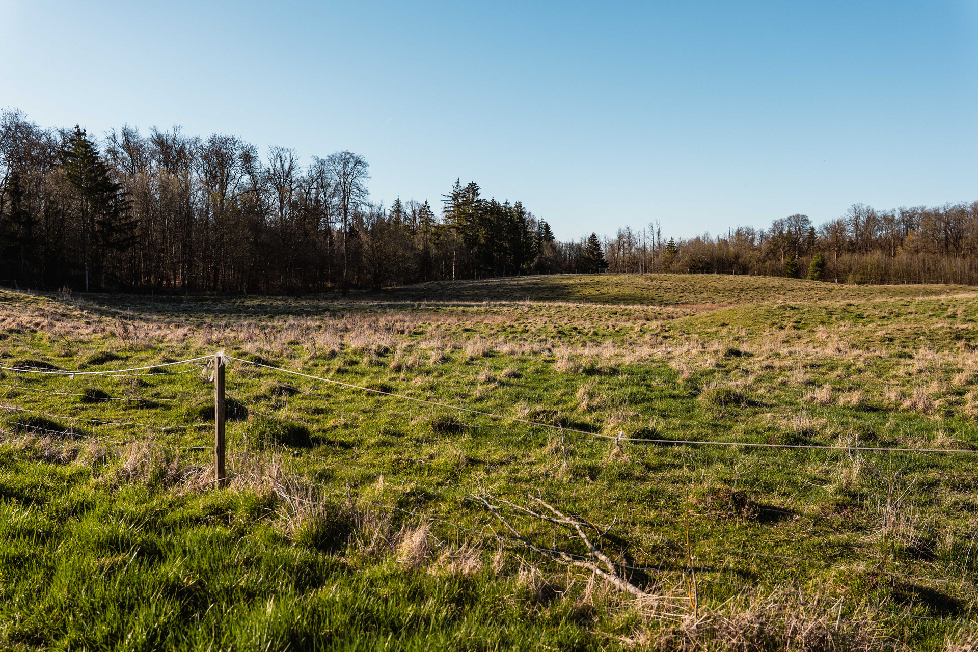 Startpunkt deiner Wanderung ist der Wanderparkplatz am nördlichen Rand von Hagenhof, direkt an einem Reiterhof. Von hier aus geht es auf dem Feldweg, der dich in einem weiten Bogen am Waldrand des Reusenbergs entlangführt. Nach etwa 300 Metern, vorbei an weiten Weideflächen, biegst du rechts ab und betrittst das Naturschutzgebiet Reusenberg.