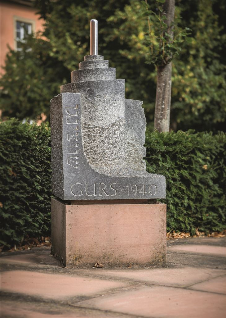 Der Gedenkstein erinnert an die Deportation der badischen Juden nach Gurs am 22. Oktober 1940. Entwurf und Umsetzung resultierten aus einem ökumenischen Jugendprojekt (2002-05), an dem 137 Deportationsorte in Baden beteiligt waren. Kopien der 137 Gedenksteine bilden ein Mahnmal auf dem Gelände der Tagungsstätte der Evangelischen Jugend (Neckarzimmern). Die Thora-Rolle bezieht sich auf eine Begebenheit des Jahres 1940 in Schwetzingen, als NS-Schergen in den Versammlungsraum der jüdischen Mitbürger eindrangen, die Thora entwendeten und den Flammen übergaben.