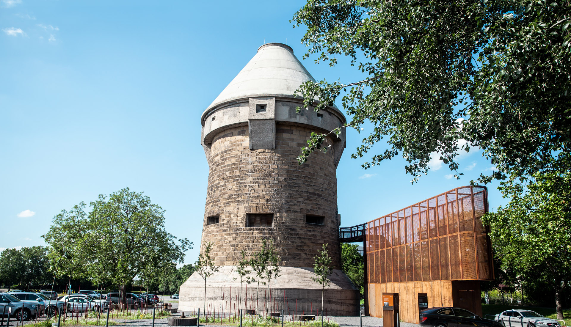Entdecken Sie mit uns einen wahren Schatz der Stadt: den markanten Hochbunker auf der Theresienwiese. Im Herbst 1940 errichtet, steht dieser Hochbunker als stummer Zeuge einer Zeit, die von Luftangriffen und dem Bedürfnis nach Schutz geprägt war. Einzigartig in seiner Art ist er der einzige Hochbunker, der eigens für den Luftschutz in Heilbronn während des Zweiten Weltkriegs erbaut wurde. Ein bemerkenswertes Detail seiner Geschichte ist der Eingang, der einst auf Höhe lag und über einen Steg erreichbar war, der von Schlachthof über die Theresienstraße führte. Nach dem Krieg wurde der Steg entfernt, was den Zugang zum Turm stark einschränkte.