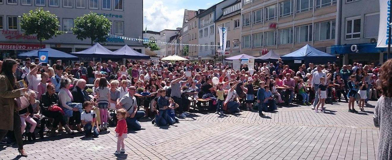 Der Kiliansplatz wird zum großen Wohnzimmer. Nach einer Andacht lockt ein Bühnenprogramm mit Tanz und Musik. Die Handlungsfelder der Diakonie stellen sich vor.