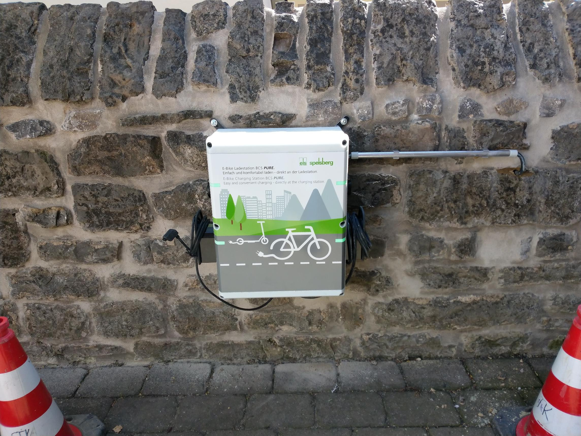 Eine neue E-Bike Ladestation am Schloss-Café in Kraichtal-Gochsheim.