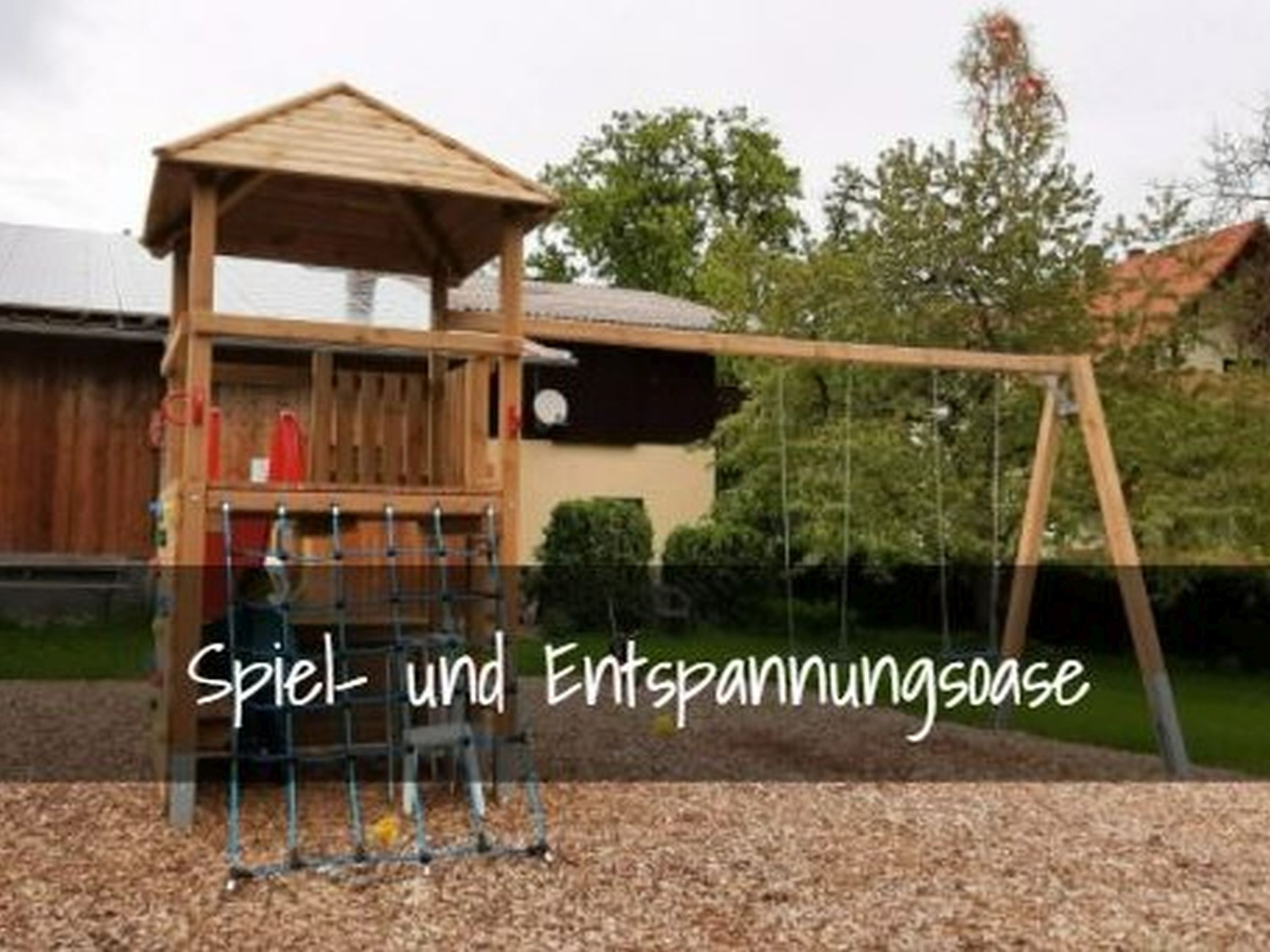 Ein großer Spielplatz und Garten mit Grillmöglichkeit lädt zum Verweilen ein.