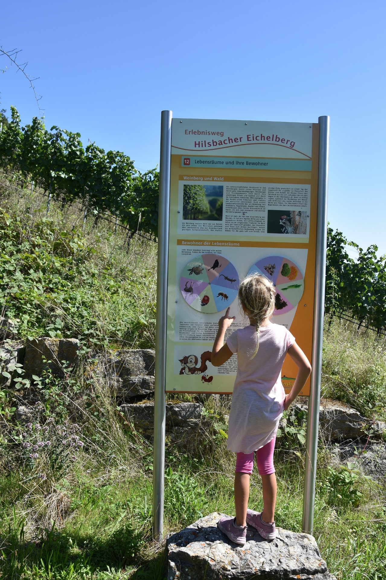 Der Erlebnisweg "Hilsbacher Eichelberg" bietet auf einer Route mit ca. fünf Kilometern Gesamtlänge 20 Stationen mit viel Wissenswertem zum Eichelberg und seiner Umgebung. Entdecken Sie die Natur und ihre Nutzung in den Bereichen Forst und Weinbau. Ob zum Spazierengehen, als Kombinationsroute zu den angrenzenden Wanderwegen oder als Ausflugsziel mit Familie und Freunden - hier wird der Eichelberg mit seiner Geschichte und seiner heutigen Nutzung auf anschauliche Weise präsentiert.