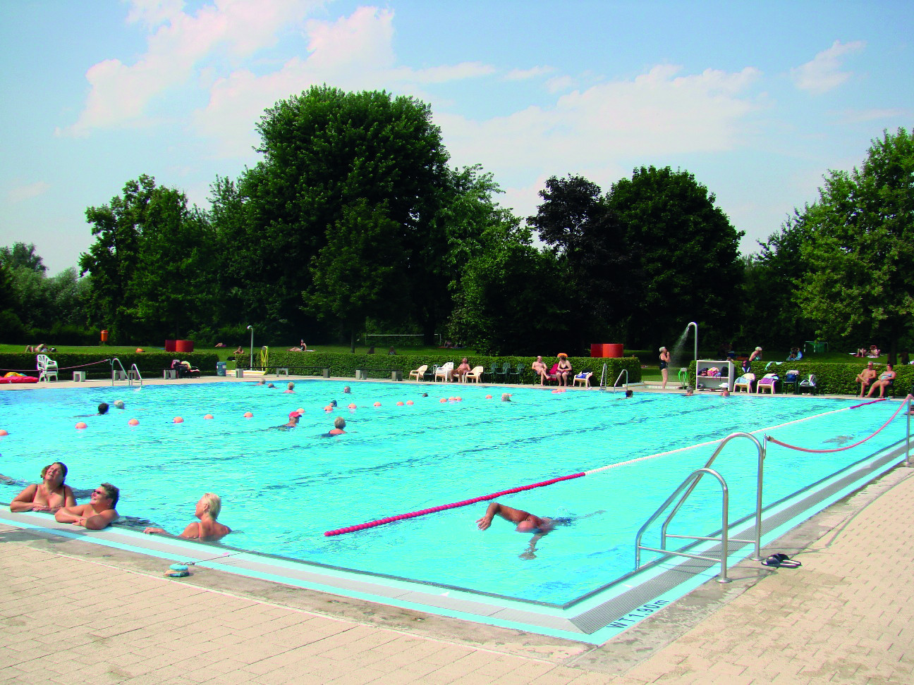 Schwimmer und Nichtschwimmer erhalten jeweils getrennte Becken, sodass sich hier niemand in die Quere kommt und jeder Besucher seinen Aufenthalt ganz nach seinen Wünschen entspannt genießen kann. Die Wassertemperatur berägt - je nach Witterung - 24°C. Mehrere Rutschen und Sprungtürme sorgen für abwechslungsreichen Badespaß. Für das leibliche Wohl der Gäste ist gesorgt.
