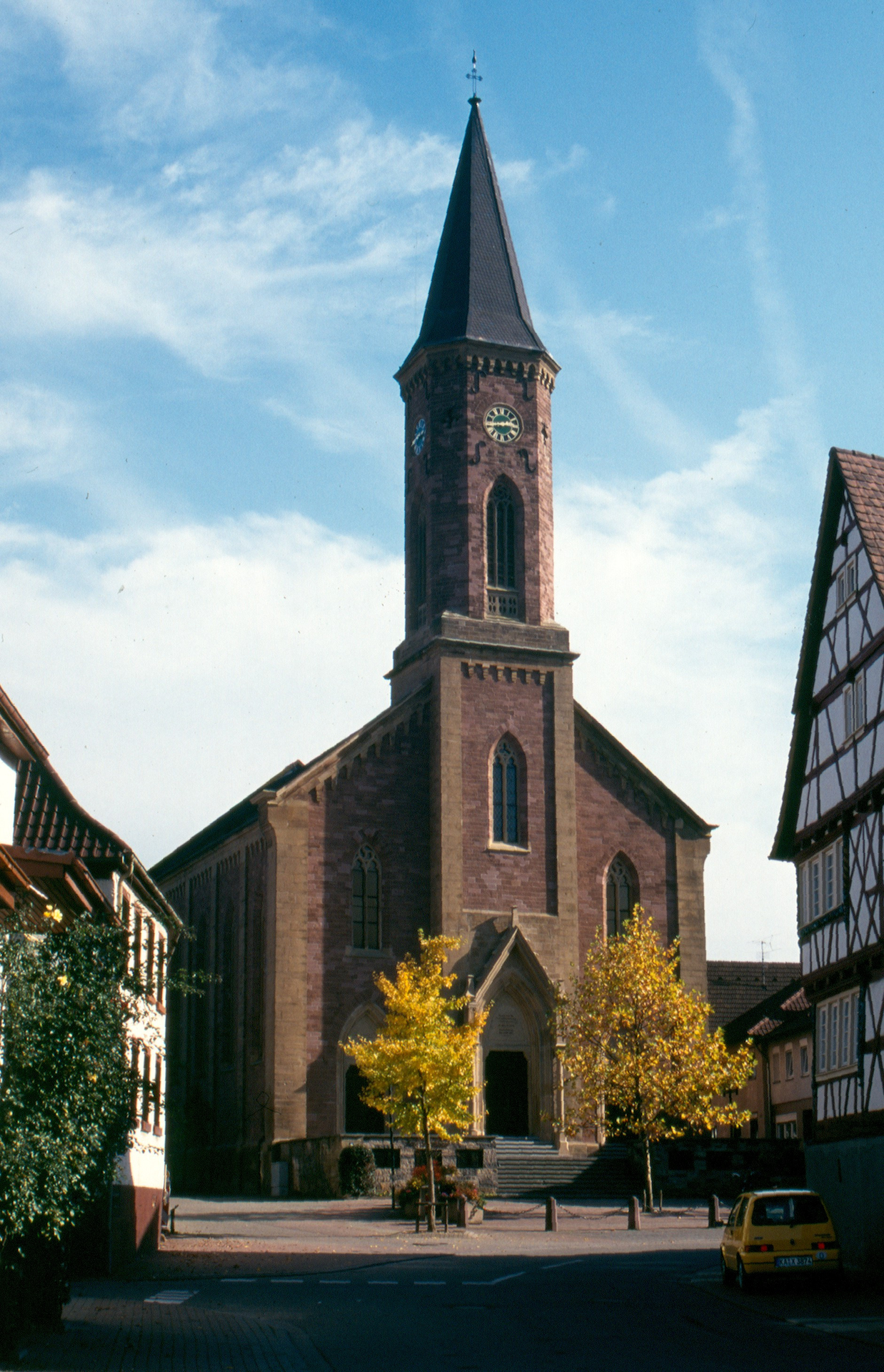 Zentral im Ortskern gelegene evangelische Kirche in Kraichtal-Münzesheim.