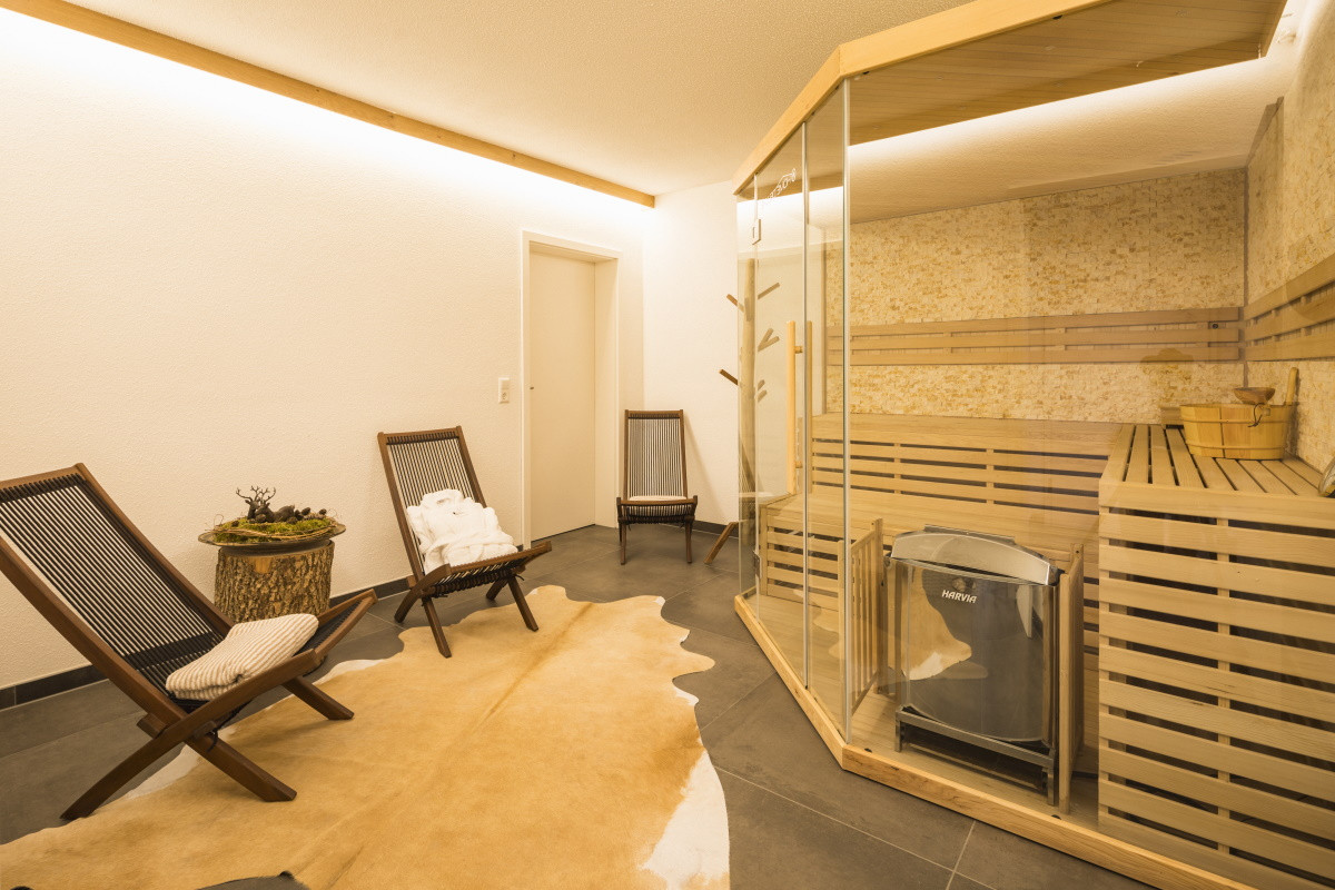 Genieße Abende vorm Kaminofen oder entspanne von einem anregenden Tag in der Natur in der Sauna. Das Interior besticht durch ein Zusammenspiel aus markantem Holz, Leder, Horn, weichen Fellen und wunderbaren Stoffen.