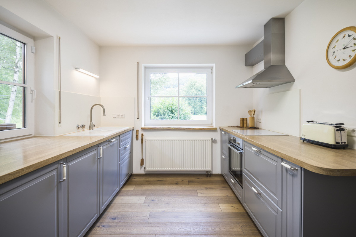 Auf 160 m² Wohn- und Nutzfläche mit großzügigem Wohn-Essbereich und Landhausküche mit Zugang auf die Terrasse, zwei Schlafzimmern, einem Alkovenbett und zwei Badezimmern wurde ein sehr gemütliches und ganz besonderes Chalet für bis zu sechs Gäste geschaffen.