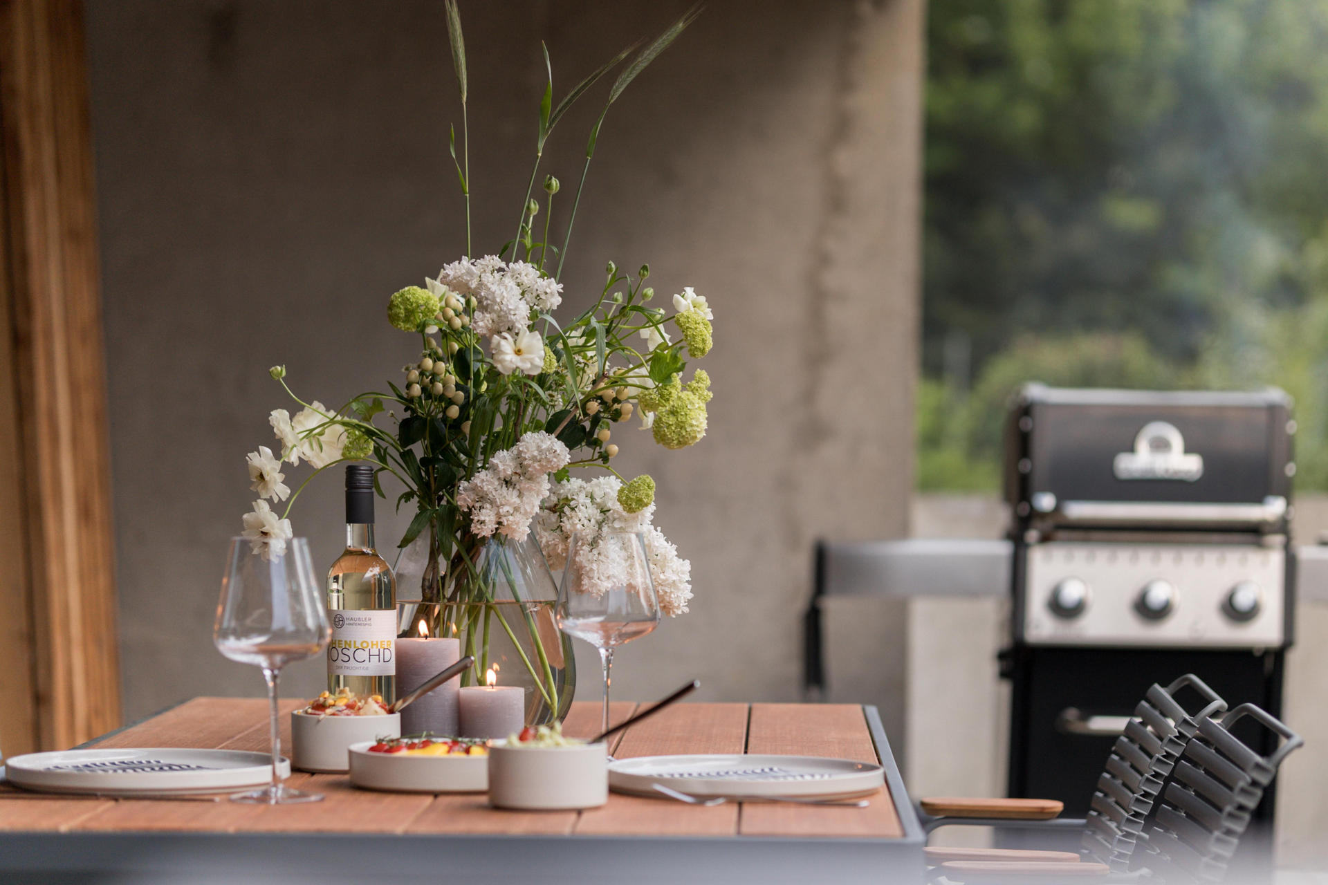 Das 1900m² große Grundstück ist komplett 1,4m hoch umzäunt und bietet viele Sitzecken für jeden Sonnenstand.
