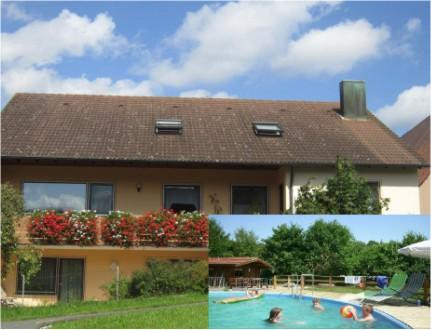 Insgesamt 4 Ferienwohungen, Schwimmbad, Liegewiese, Spielplatz, Gartenhaus und Grill. Vom Kneipp-Bund anerkannter Gesundheitshof. Kinderbett, Nichtraucher-Ferienwohnungen