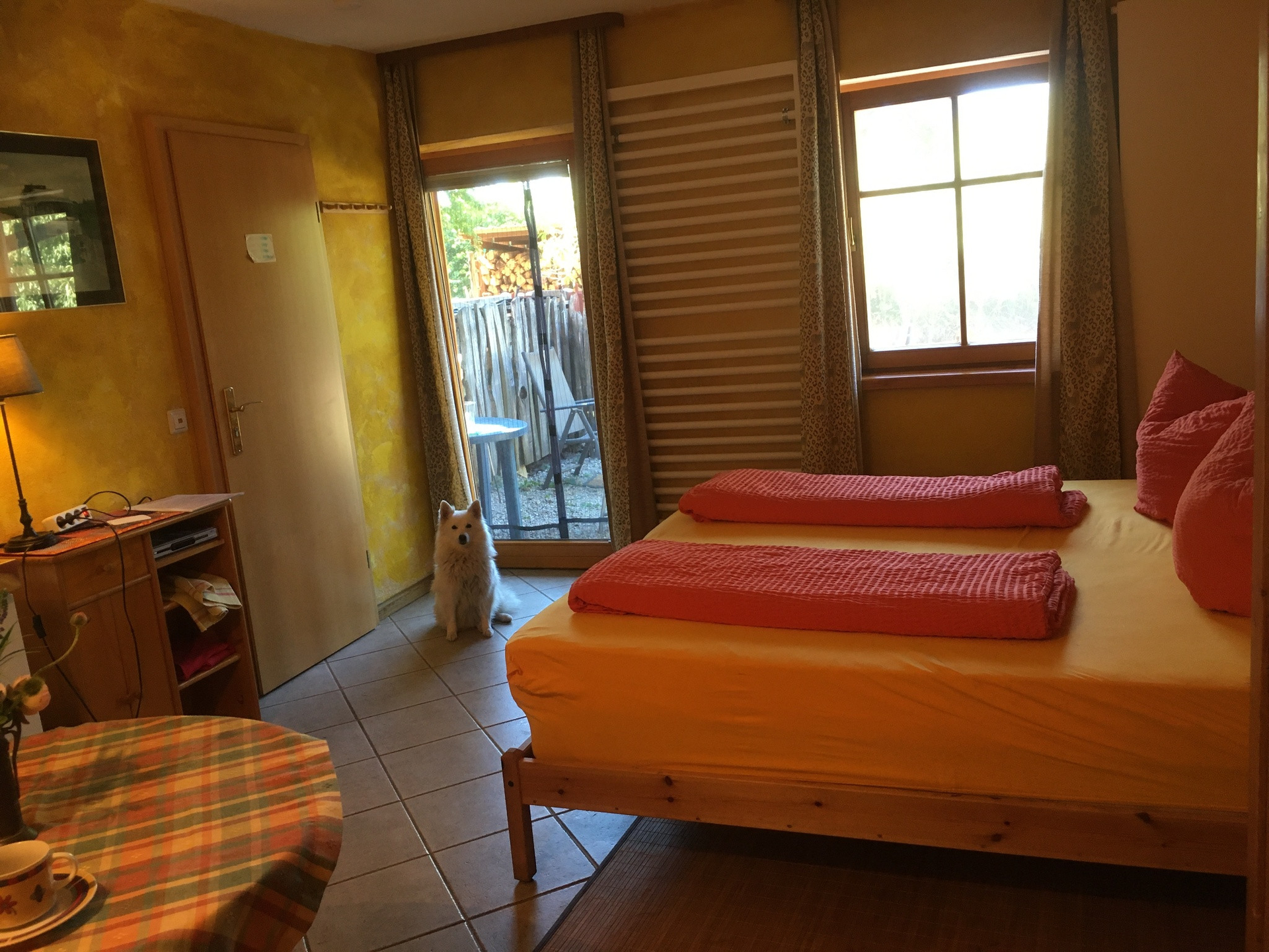 Naturnaher Urlaub am Rande des lieblichen Taubertals. Umgeben von Wiesen und Feldern liegt unser hundefreundlicher Ferienhof fernab von Stress und Hektik nahe der Romantischen Straße zwischen Creglingen und Rothenburg ob der Tauber. Lassen Sie bei uns einmal die Seele baumeln. Hier sind Sie auch mit ihren Hunden willkommen. Der große eingezäunte Garten wird Ihnen zu einem entspannten Aufenthalt verhelfen. Hier darf Ihr Hund noch Hund sein. Es erwarten Sie gemütliche, liebevoll mit Vollholzmöbeln eingerichtete Ferienwohnungen im Erdgeschoss unseres Neubaus, teilweise mit direktem Zugang zum eingezäunten Garten. Hier finden Sie auch einen Lagerfeuerplatz. Im Stall können Sie eine Gefriertruhe für Hundefleisch nutzen. Hundefleisch können Sie bei uns auch käuflich zu erwerben. Auf Anfrage ist auch ein reichhaltiges Frühstück möglich. Wellnessangebote wie Sauna, Massagen, Fastenkuren sind im Haus buchbar, Naturheilpraxis für Hund und Mensch befindet sich im Haus. Der große Frühstücks- und Seminarraum ist auch für Feiern, gemeinsame Treffen, Seminare etc. zusätzlich buchbar. Ich freue mich, Sie bald hier in Schmerbach auf Hof Sommerberg begrüßen zu dürfen. Ihre Angelika Buchholz