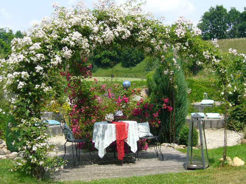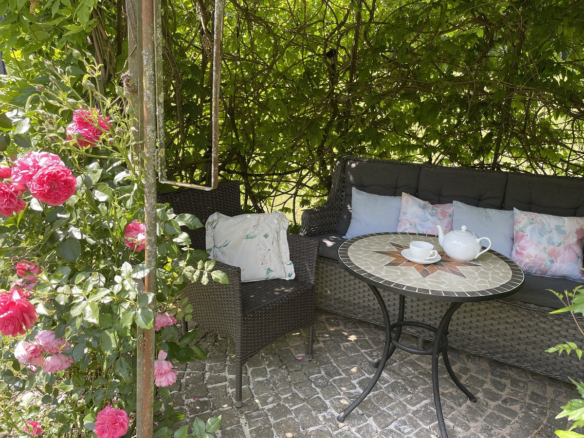 Die Aumühle liegt herrlich idyllisch im Grünen. Die ruhige Lage garantiert einen erholsamen Urlaub. Rundum befindet sich ein traumhaft schöner Landhausgarten – eine einladende Erholoase.