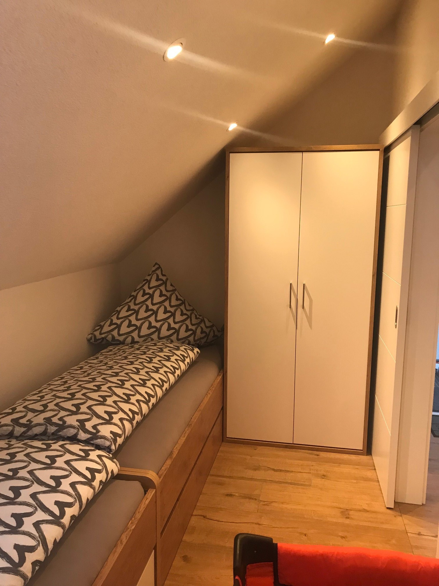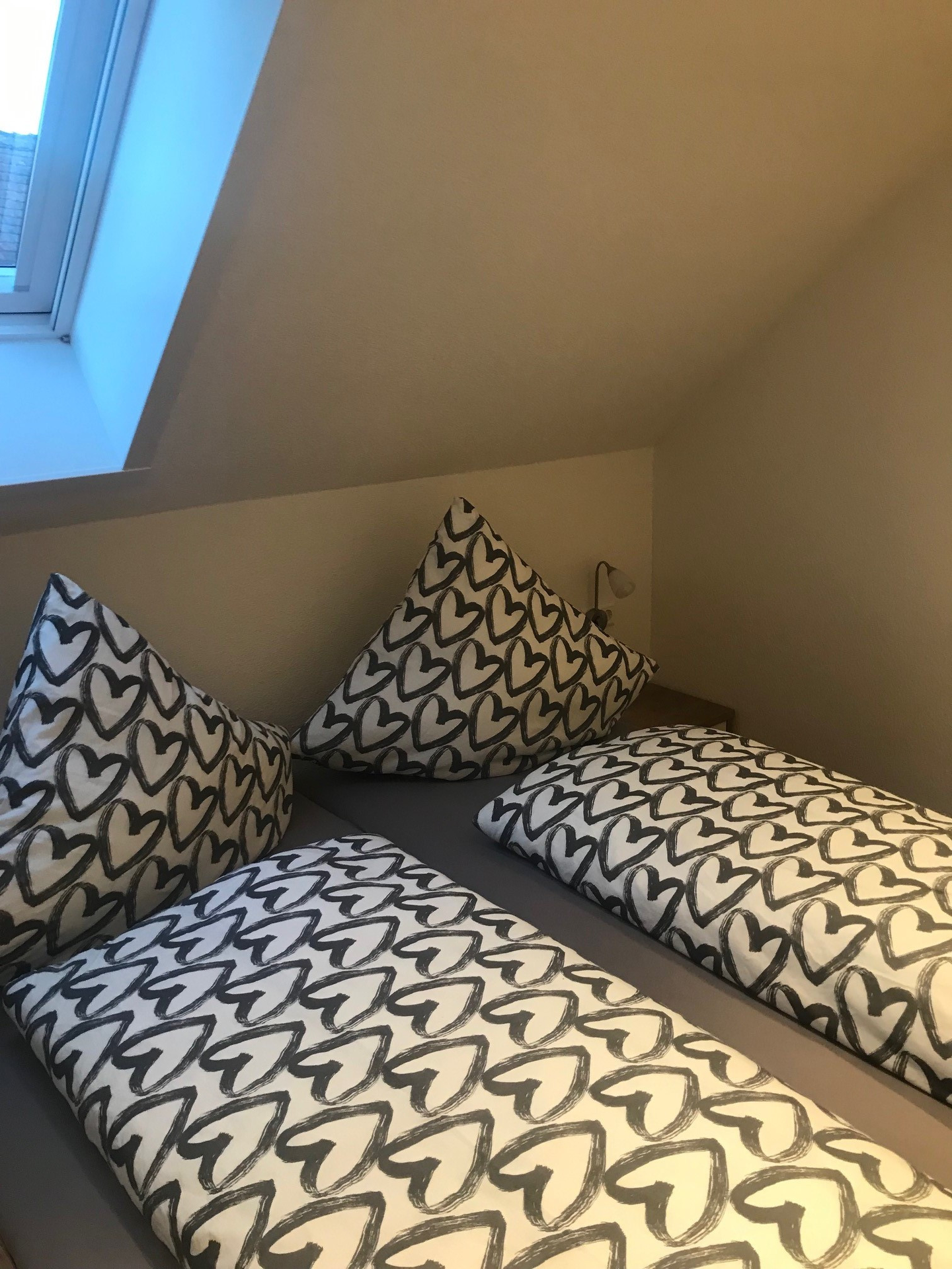 Die Wohnung bietet bis zu fünf Schlafplätze, aufgeteilt auf zwei Schlafräume. Auf Wunsch kann auch gerne ein Babybett sowie ein Hochstuhl bereitgestellt werden. Die Fenster der Schlafräume sind mit Fliegengitter ausgestattet und können vollständig verdunkelt werden.