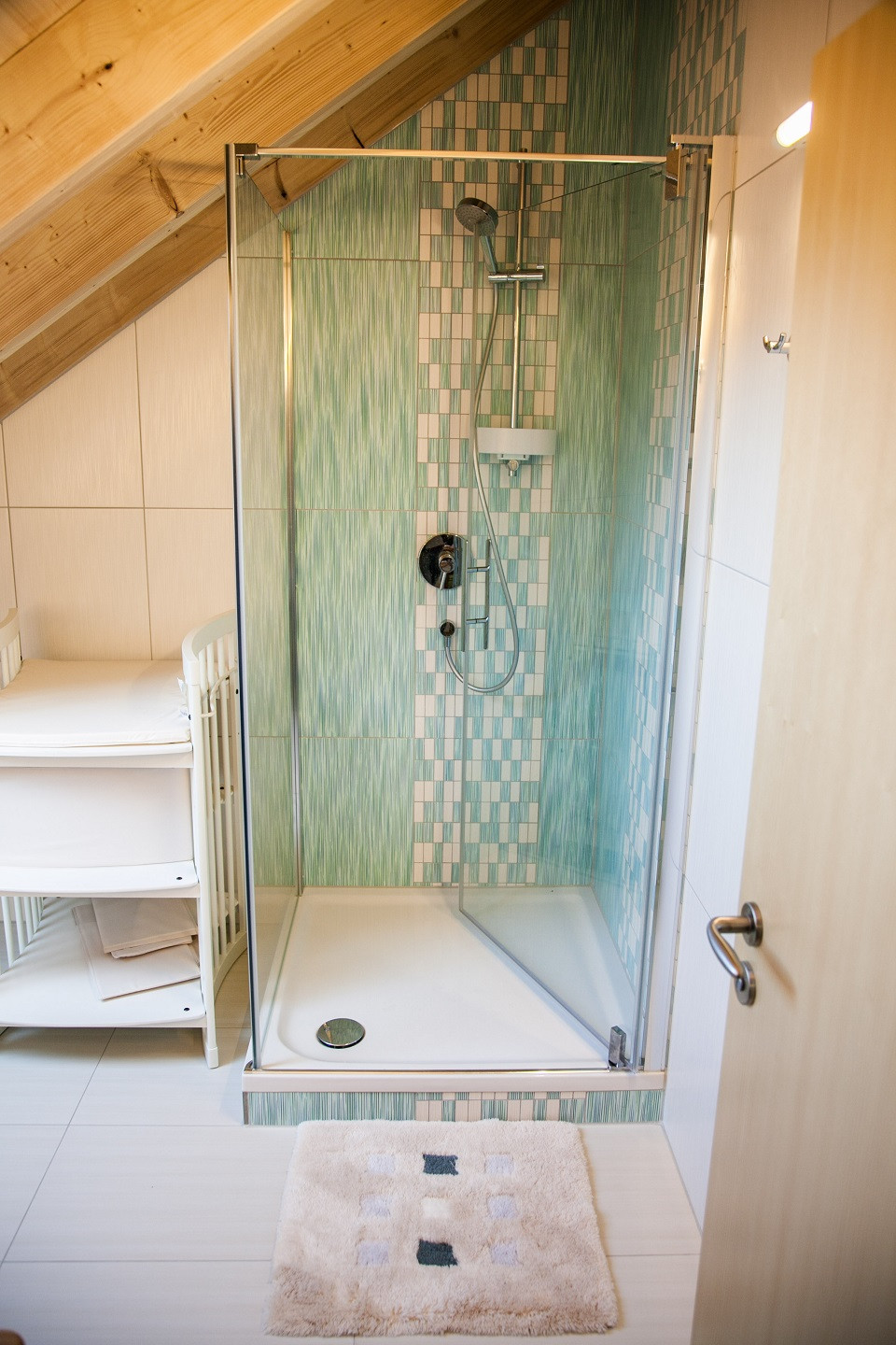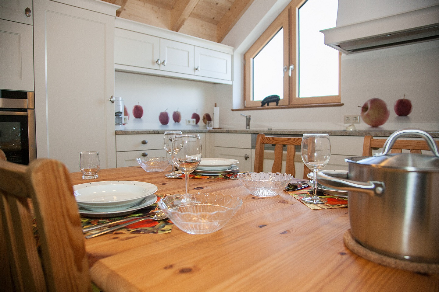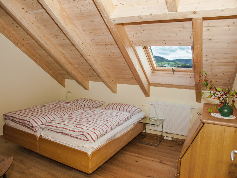 Die Wohnung bietet Platz für bis zu 5 Personen in 4 Schlafzimmern (1 Doppelbett und 3 Einzelbetten), eine moderne Wohnküche im Landhausstil sowie Dusche, WC und ein zusätzliches WC. Alle Zimmer sind mit TV und Internet (inkl. LAN-Kabel) ausgestattet.