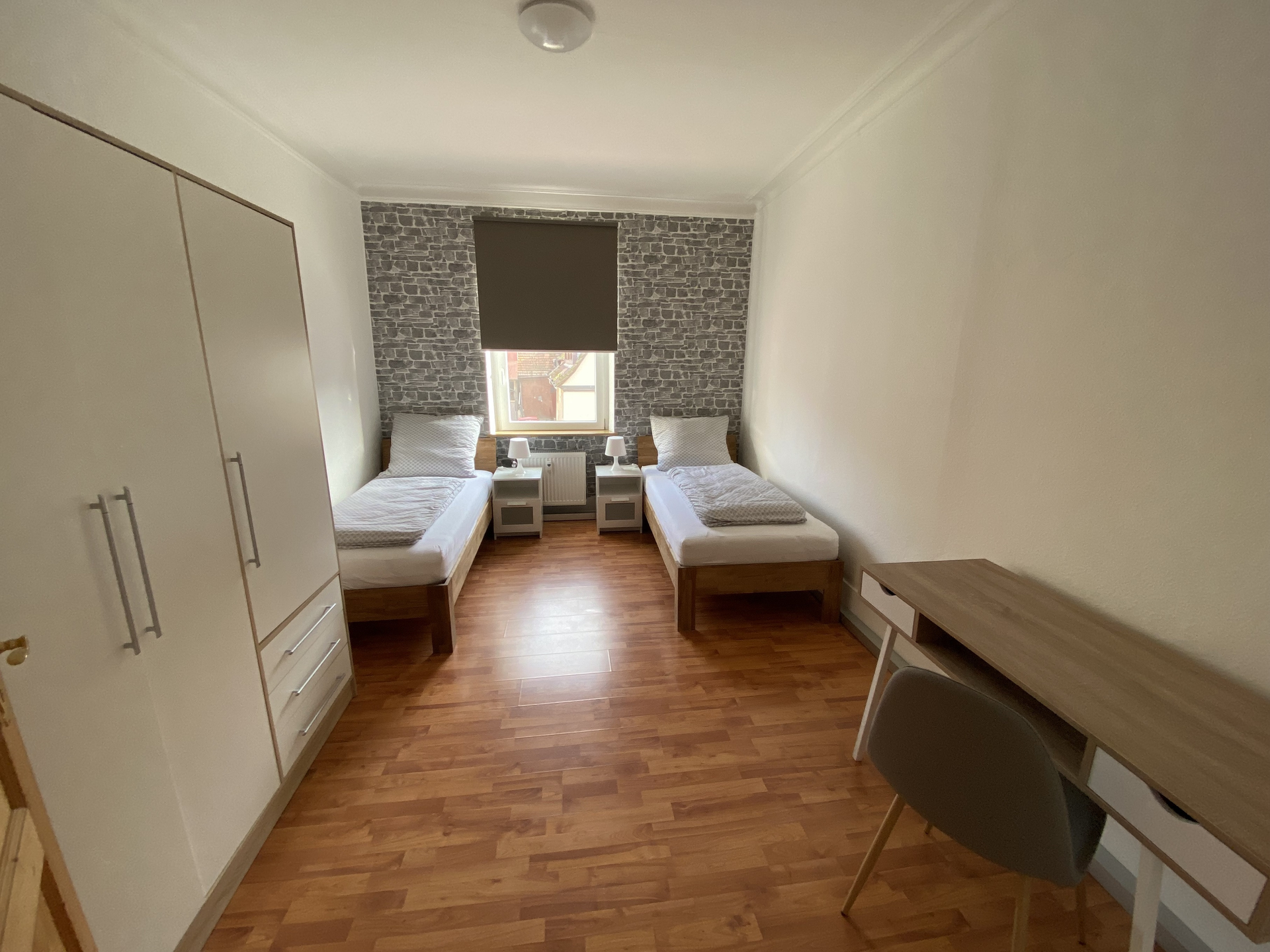Im Schlafzimmer befindet sich ein Schreibtisch der als Arbeitsplatz genutzt werden kann.