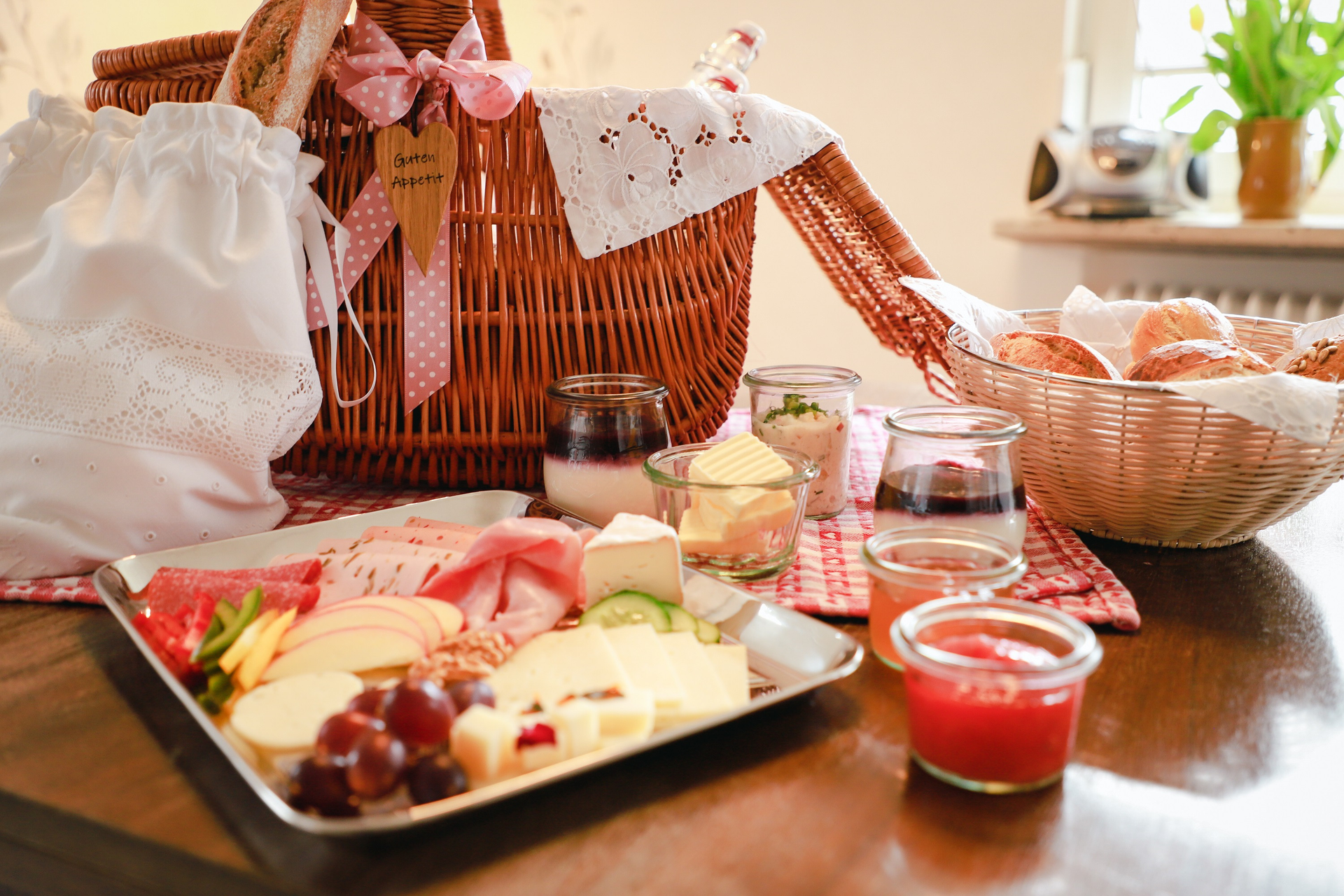 Auf Wunsch bieten die Gastgeber ein hausgemachtes "Frühstück im Korb". Liebevoll aus regionalen Produkten zusammengestellt, steht einem kraftvollen Start in den Tag nichts mehr im Weg. Ein besonderes Highlight sind die Backwaren und Marmeladen aus eigener Herstellung.