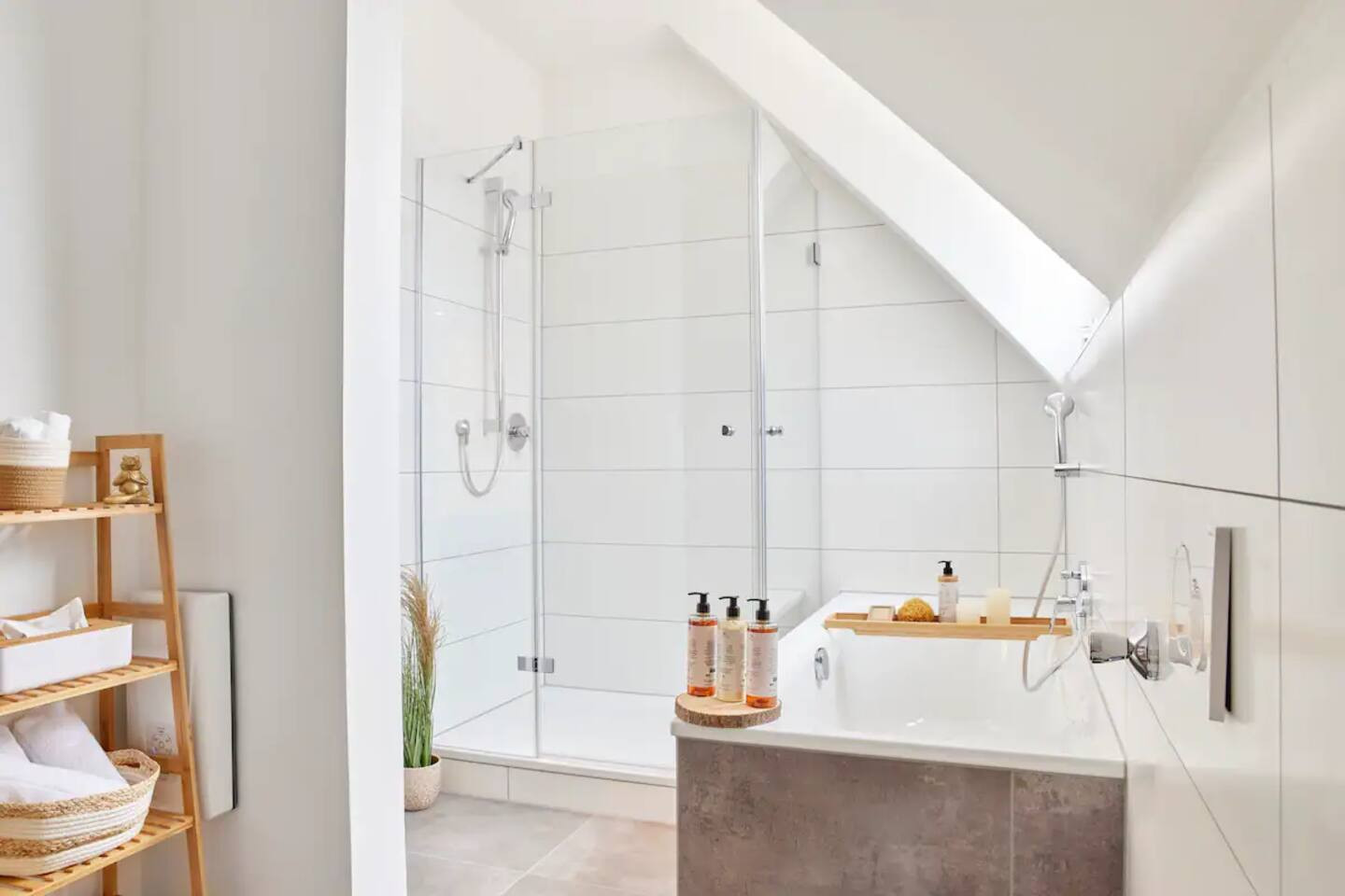 Stilvolle Maisonette Wohnung mit ca 125qm und 3 Schlafzimmern, Wohnzimmer und vollausgestatteter Küche. Modernes Bad mit Badewanne und Dusche.