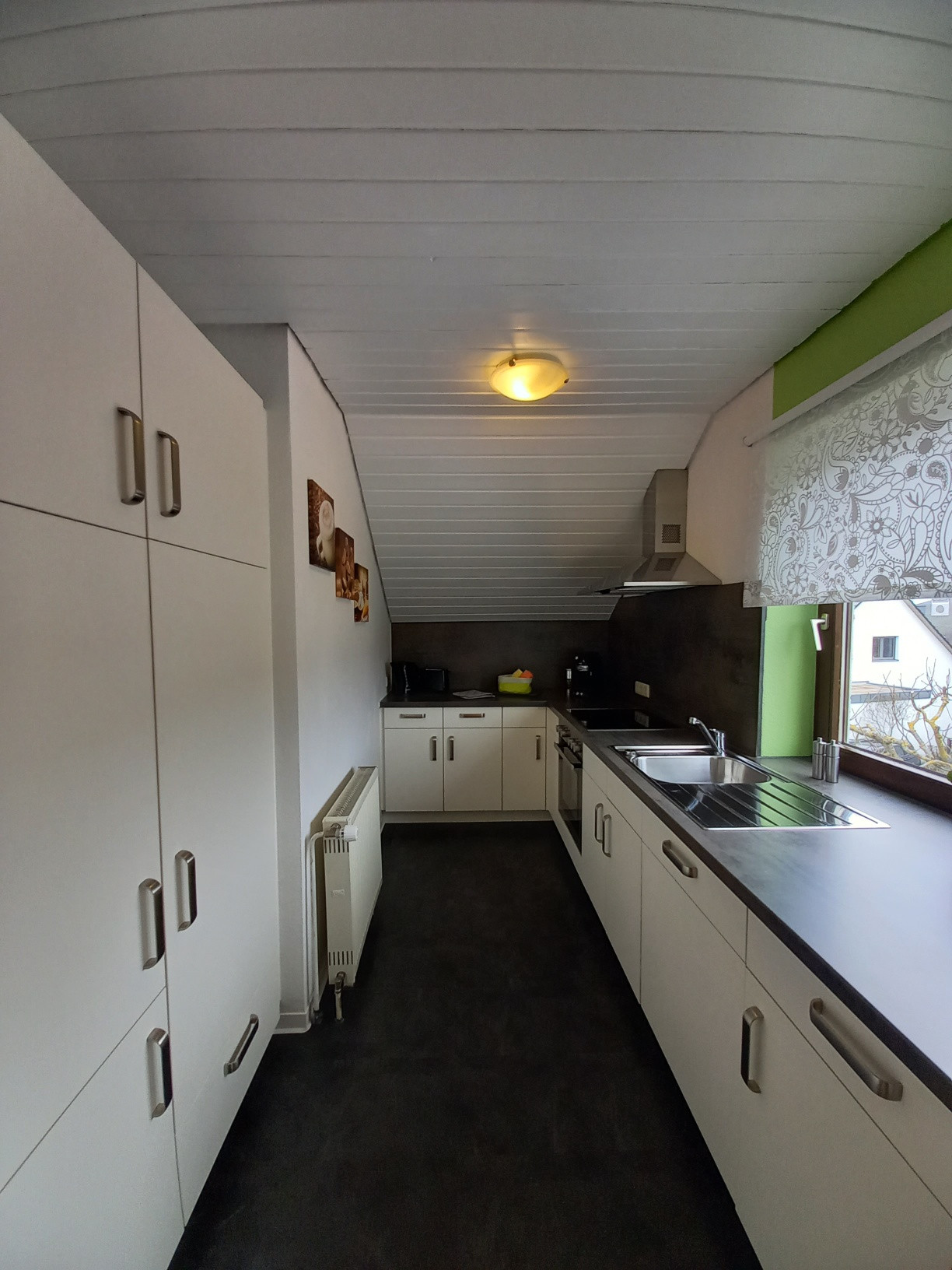 - Einbauküche mit Kaffeemaschine, Wasserkocher, Spülmaschine, Backofen, Kühlschrank mit Gefrierfach