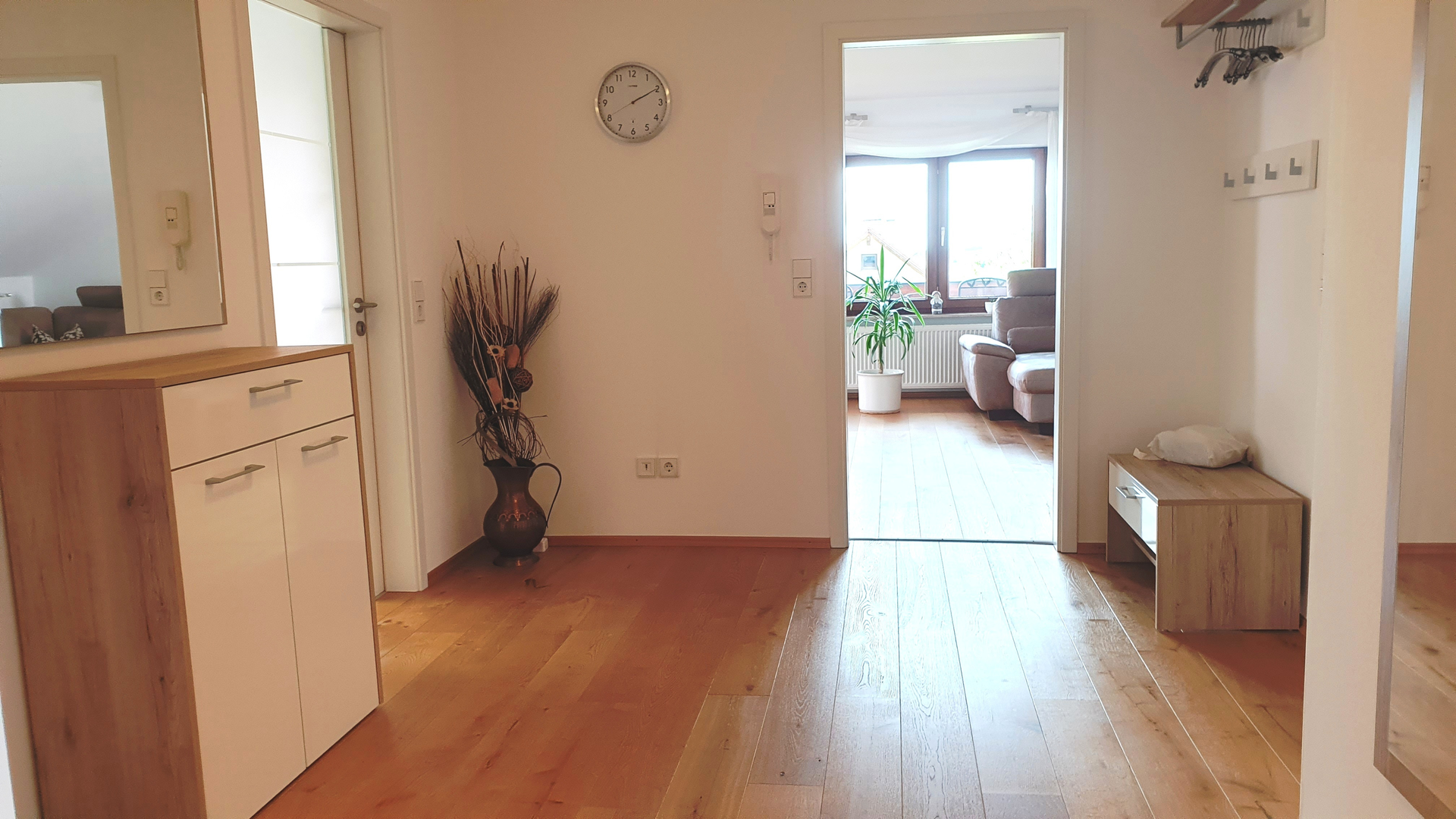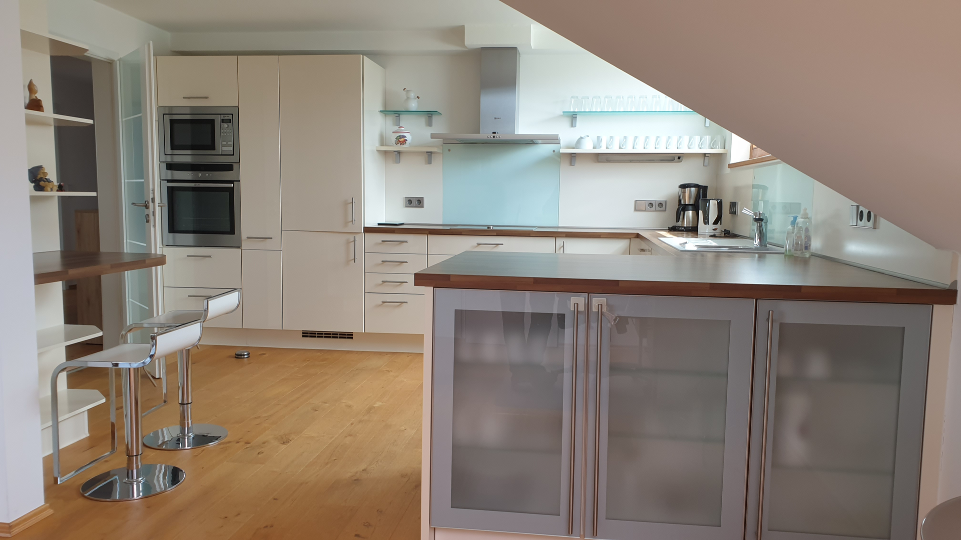 Unser Haus liegt in einer ruhigen Nebenstraße, die Ferienwohnung befindet sich im Dachgeschoss und bietet auf 110 qm einen großzügigen Wohn- und Essbereich mit offener Küche, einen großen Balkon mit viel Ausblick, 3 Schlafzimmer (zweimal mit Doppelbetten, einmal Einzelbetten) zum Teil mit Burgblick, ein Badezimmer mit großer Wanne, Dusche, Waschbecken und WC, ein separates Gäste WC, einen PKW-Abstellplatz und Fahrradabstellplatz. Dusch- und Handtücher sind vorhanden. Haustiere sind nicht erwünscht.