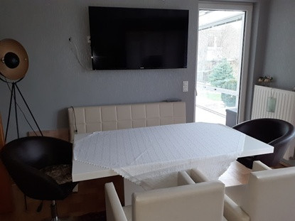 Die Wohnung hat einen Schwedenofen und einen LCD-TV.
